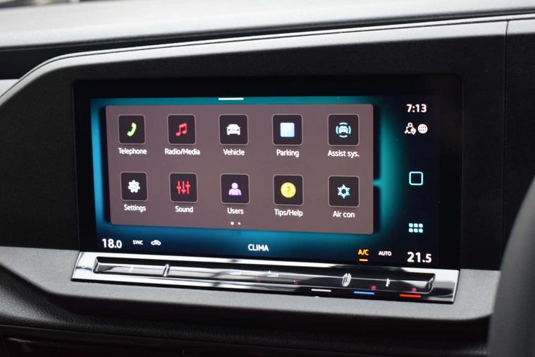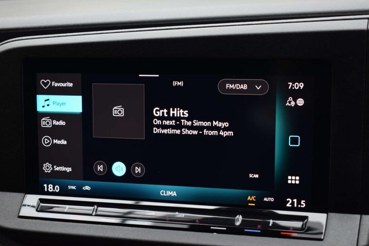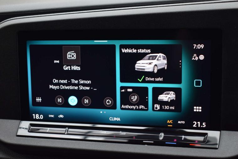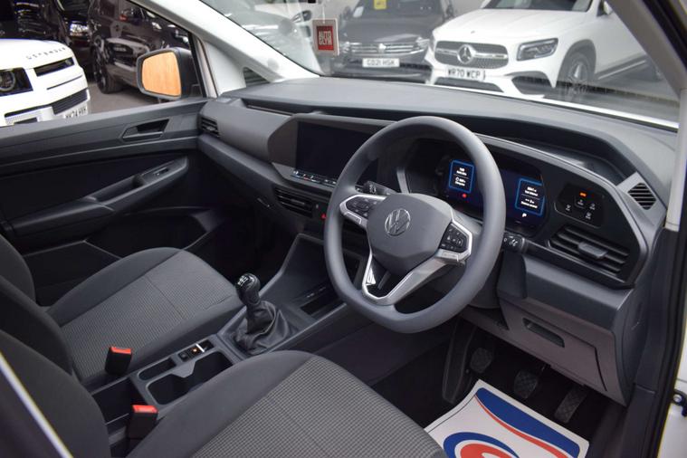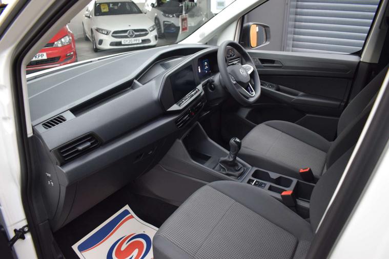 The specification consists of Black & Grey cloth trim, 5 x Travelling seats, Twin side loading with privacy glass & sliding windows, Fully carpeted rear load area to floor sides & rear doors, Roof lighting in rear, Auto hold, Colour touch screen multi media system, Bluetooth audio & telephone, DAB, 2 x USB, Digital climate control, Air conditioning, Lane keep assist, Speed warning, Drowsiness monitor, Attention monitor, Front braking assist, Virtual cockpit, Flat bottom multi function steering wheel, Cruise control, Speed limiter, Auto lights, Auto wipers, Electric windows, Electric adjustable mirrors, Remote central locking, 17" Silver alloy wheels, Twin rear doors, Roof bars,