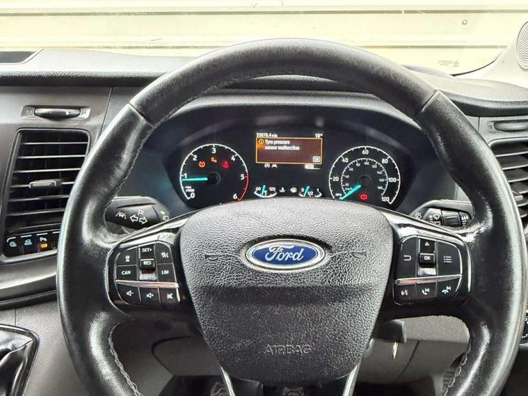 This 2021 Ford Transit 2.0 350 EcoBlue Trend FWD L3 H3 Euro 6 (s/s) 5dr boasts exceptionally low mileage for its age, having covered just 33, 800 miles, and has been owned by only one careful keeper. This 350 Trend model, finished in the Trend trim, is powered by an efficient 2.0L Diesel engine meeting Euro 6 emissions standards. It comes equipped with a suite of advanced features designed to enhance your driving experience, including a Front Camera with Split View for comprehensive parking assistance, Manual Air Conditioning for comfort, and ICE Pack 25 featuring Intelligent Adaptive Cruise Control. Further enhancing safety and convenience are the BLIS Blind Spot Information System with Cross Traffic Alert and Parking Aid for both the front and rear, complemented by front fog lamps.