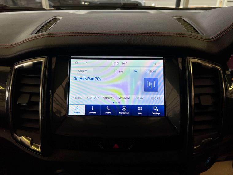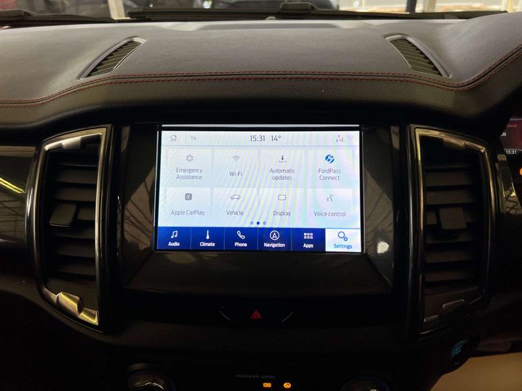Finished in a striking Frozen White, the Ford Ranger commands attention on and off the road. Its bold exterior is complemented by the luxurious Journey Grain Partial Leather interior in Ebony, offering a sophisticated and comfortable driving experience.