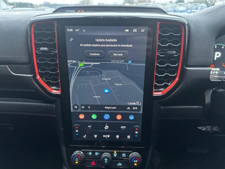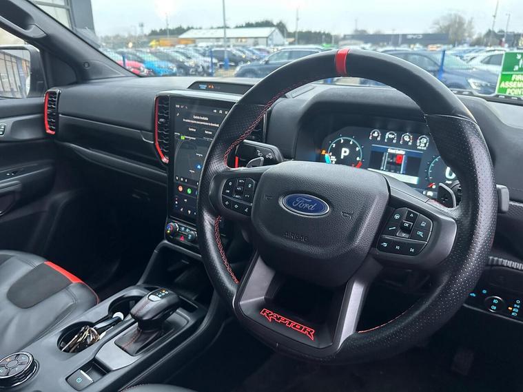 This 2023 Ford Ranger Raptor is a remarkable find, boasting an exceptionally low mileage of just 5418 miles and having had only one owner since new. This 3.0T V6 EcoBoost Raptor Auto 4WD Euro 6 (s/s) 4dr model is equipped with a powerful 3.0L petrol engine delivering an impressive 288 bhp, all channelled through its robust Four Wheel Drive system. Notable features include the comfort of heated front seats, a comprehensive 360 degree camera system for effortless parking assistance, and passive keyless entry and start for ultimate convenience. The Technology Package 73 further enhances the driving experience with Blind Spot Assistance, Adaptive Cruise Control, automatic headlights, front and rear parking sensors, and electronic automatic air conditioning with climate control.