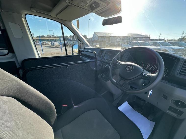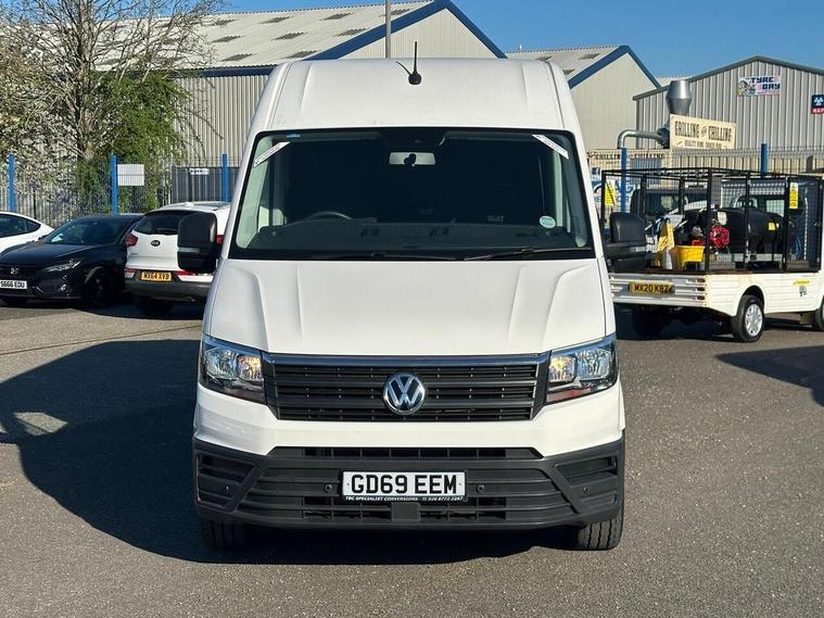 This 2019 Volkswagen Crafter is a 2.0 TDI CR35 BlueMotion Tech Trendline FWD LWB High Roof Euro 6 (s/s) 5dr, a robust and capable vehicle designed for demanding tasks. Powered by an efficient 2.0 litre diesel engine, this Euro 6 compliant model offers a towing weight of 3000 kg, making it suitable for a variety of commercial needs. Inside, you'll find practical features such as two 12V sockets in the front and the Composition Media system, which includes DAB+ radio and an 8 inch touch screen with Bluetooth connectivity, all managed conveniently with voice control.