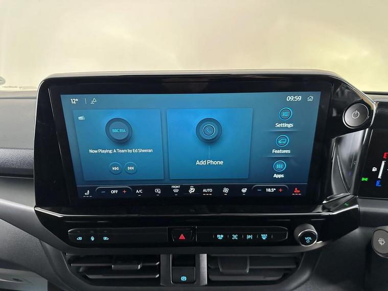 This 2024 Ford E Transit Custom presents an exceptional opportunity with an incredibly low mileage of just 452 miles, having had only one owner since new. This electric van, a 320 65kWh MS-RT Crew Van Auto L2 H1 5dr derivative, boasts a substantial 83 kWh battery offering a maximum range of 170 miles. Charging is convenient, with a full charge at home taking approximately 6 hours and 20 minutes using a 7kW charger, and a rapid 28 minutes to reach 80% capacity at a public charging station. Inside, you'll find a premium non animal eco leather single passenger seat with heating, along with wireless phone charging. For practicality, the load compartment includes six tie down loops, and the Reversing Camera Pack, part of the DAT Pack 2, provides front and rear parking sensors and a rear camera for enhanced manoeuvrability.