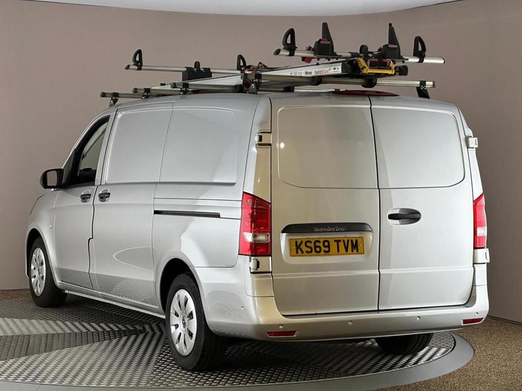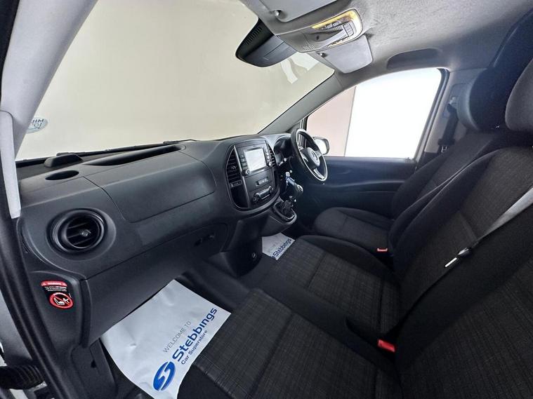 This 2019 Mercedes Benz Vito 110 CDI Progressive FWD L2 Euro 6 (s/s) 5dr boasts a single owner from new, offering excellent provenance. Powered by an efficient 1.7L diesel engine and meeting Euro 6 emissions standards, this Progressive trim model is equipped with the Audio 15 system featuring Bluetooth connectivity, and the Headlight Assistant for automatic headlight activation. For effortless manoeuvring, it includes Active Parking Assist with PARKTRONIC, which utilises front and rear parking sensors.