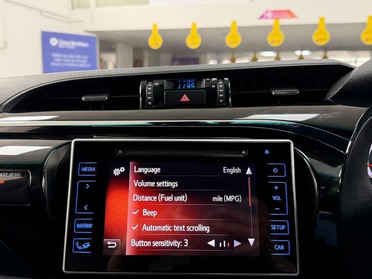 18in Alloy Wheels - Bi-Tone Grey - Machined Face - 6 Spoke, 7in Multimedia Display, Active Traction Control - ATC, Adaptive Cruise Control, Anti Lock Braking System - ABS with Electronic Brake-Force Distribution - EBD, Auto Headlights, Automatic Air Conditioning, Automatic Headlight Levelling, Aux-In Connector, BA - Brake Assist, Black Side Bar, Bluetooth Connectivity, Bumpers - Body Coloured, Cabin Cooling System During Engine Idling, Child Safety Locks on Rear Doors, Cooler in Upper Glovebox, DAC - Downhill Assist Control, Digital Audio Broadcast - DAB, Electric Windows - Front, Emergency Brake-Light Signal - EBS - Hazard Type, Follow Me Home Headlights, Front 12V Power Outlet x2, Front 220V Plug Outlet, Front Fog Lights, Front Mudguards, Front Passenger Airbag Detector, Front Passenger Airbag On-Off Switch, Front Seat Belt Reminder, Full Spare Alloy Wheel, HAC - Hill Start Assist Control, Headlight Cut-Off Reminder, Headlights - LED, Highway Terrain Tyres, Immobiliser, Inner Load Hooks on Cargo Deck, LED Daytime Running Lights, Lane Departure Alert, Lockable Tailgate, Power Adjustable and Heated Door Mirrors, Power Retractable Door Mirrors, Power Steering, Pre-Collision System with Pedestrian Detection, Privacy Glass - Rear, Rear Fog Light, Rear Mudguards, Rear View Camera, Road Sign Assist, Seats - Drivers Power Adjustment, Smart Entry and Smart Start System, Static Guide Lines on Rear-View Camera Display, Supplemental Restraint System - SRS - Airbags - 7 Airbags, TPMS - Tyre Pressure Monitoring System, Toyota Safety Sense 2, Toyota Touch 2 Multimedia, Toyota Touch 2 with Go Navigation, Trailer Sway Control - TSC, USB Connector, Underbody Protection Cover, VSC - Vehicle Stability Control