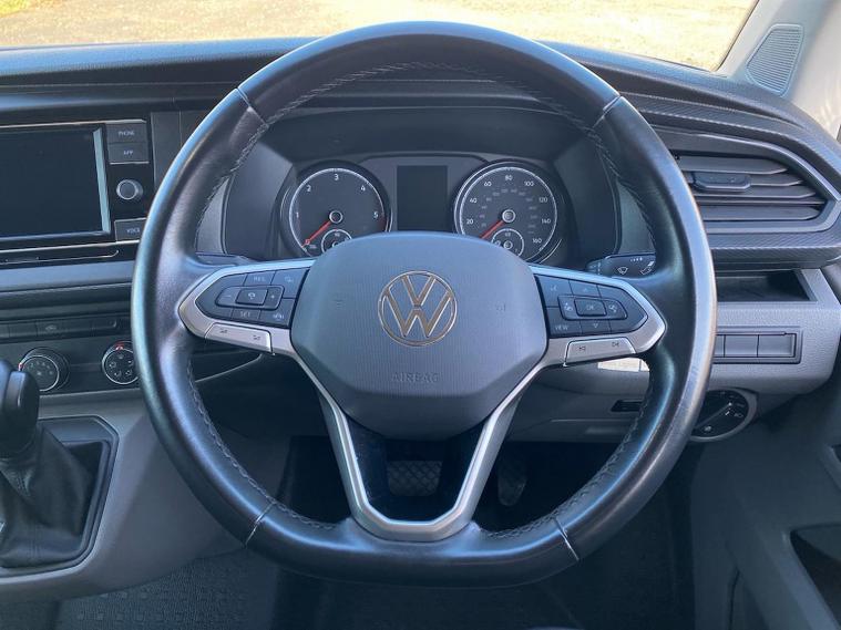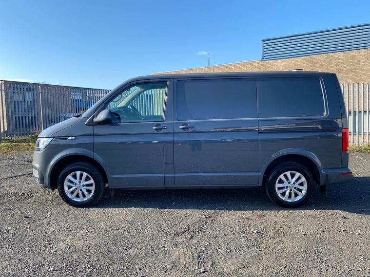 Transporter 3.0 tonne short wheel base Highline 150ps 2.0tdi DSG in pure grey with 12914 miles on the clock. This was our own mobile tech van and has been serviced and prepped for immediate delivery. Extra's include: Rear bumper protection strip, heavy duty seat covers, rear tailgate without window, armrests for both front seats, daytime running lights with coming home feature, auto wipers, adaptive cruise control with speed limiter and city emergency braking, forward collision warning with braking, exterior pack, prep for we connect, heated folding wing mirrors, front & rear parking sensors, air con, leather multi function steering wheel, cornering front fogs, dab, quick clear heated windscreen, alarm, ply line, rear cargo space work lights, roof beacon and many more. A short video presentation of this vehicle is available upon request, call today for more information.