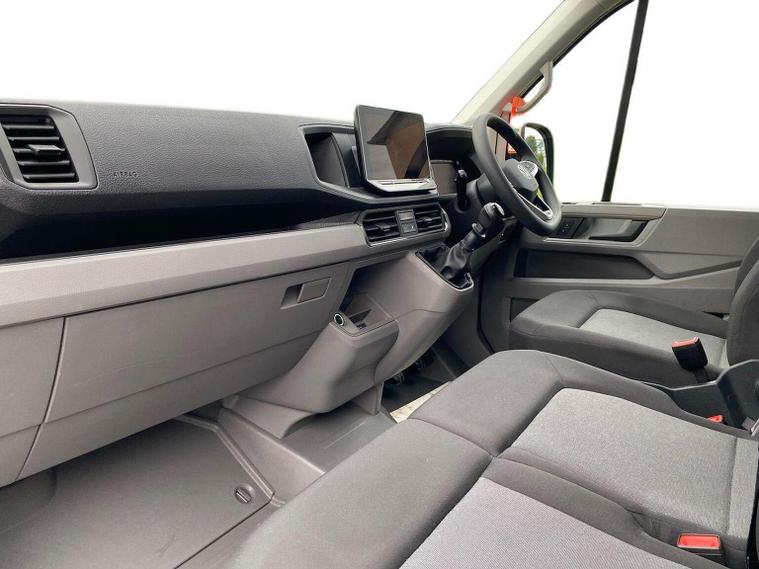 The Volkswagen Crafter CR35 Commerce Plus MWB in striking Candy White combines practicality, comfort, and cutting-edge technology. Under the bonnet, a robust 2.0-litre TDI diesel engine delivers 140 PS, paired with a manual transmission to provide dependable performance whether navigating city streets or covering long distances. Driving is made easier with front and rear parking sensors and automatic headlights, while electrically adjustable mirrors ensure clear visibility in all conditions. The ply-lined load space, reinforced lashing rings, and easy-access rear wing doors with a side sliding door and integrated handles make loading and securing cargo both simple and efficient. The electronically controlled air conditioning system maintains the perfect temperature, and the storage package adds an overhead compartment with two 1-DIN slots and a reading light, offering convenient space for your essentials. A multifunction steering wheel and cruise control enhance driving comfort, especially on longer journeys. The Crafter also excels in technology. The Digital Cockpit dash works seamlessly with a feature-rich infotainment system that includes DAB radio, Bluetooth connectivity, and Volkswagen App-Connect. To keep you connected on the move, the cab is equipped with multiple USB ports. By choosing this vehicle, which is compliant with ULEZ, you'll not only benefit from cleaner, healthier air in urban environments, but also reduce your carbon footprint and running costs.