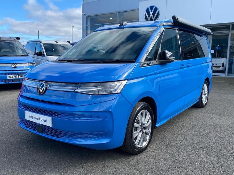 California Ocean 245ps 1.5 eHybrid DSG 4Motion in florida blue with 6385 miles on the clock. This vehicle is serviced and prepped for immediate delivery. Extra's include: 5+ promise, discover pro navigation, park assist with front & rear parking sensors, rear view camera, prep for we connect, heated leather multi function steering wheel, trip computer, bluetooth, keyless advance, quick clear heated windscreen, daytime running lights with coming home feature, auto wipers, lane change assist, digital cockpit and many more. A short video presentation of this vehicle is available upon request, call today for more information.