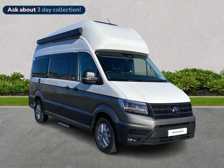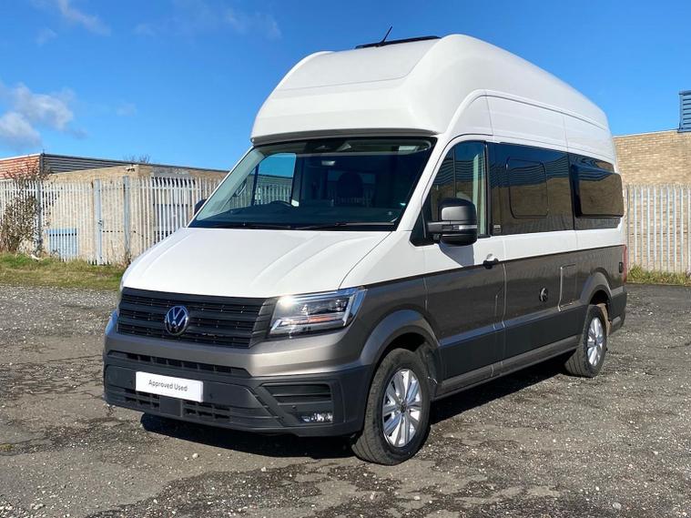 Grand California 600 163ps 2.0tdi automatice in two tone metallic mojave biege and candy white. Miles are only 2400 ! This vehicle is serviced and prepped and ready for immediate delivery. Extra's include: 5+ promise, loft bed, panoramic roof, electric auxillary heater, heating system for water and powered by mains or diesel, rear view camera, forward collision warning incl autonomous braking, adaptive cruise control with speed limiter, air con, alarm, front & rear parking sensors, leather multi function steering wheel, trip computer, bluetooth, cornering front fogs, dab, discover media navigation, voice control, app connect, usb, lane keep assist, blind spot monitor, heated power folding wing mirrors, and many more. A short video presentation of this vehicle is available upon request, call today for more information.