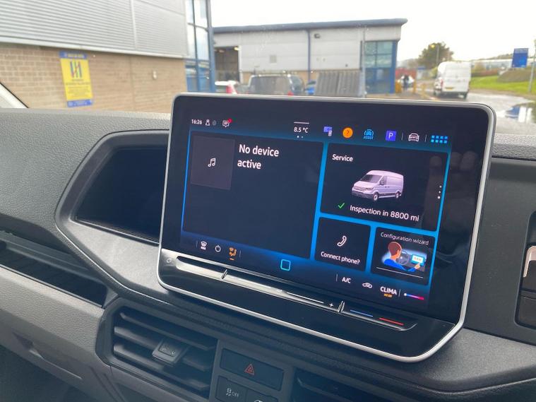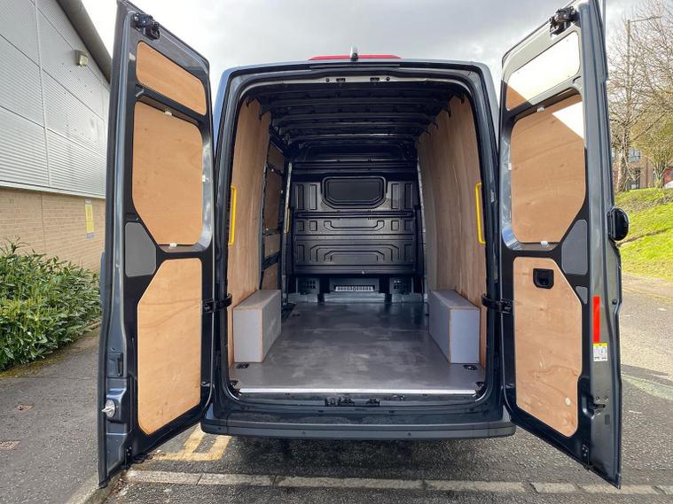 The Volkswagen Crafter CR35 Commerce Plus MWB in striking Indium Grey combines practicality, comfort, and cutting-edge technology. Under the bonnet, a robust 2.0-litre TDI diesel engine delivers 140 PS, paired with a manual transmission to provide dependable performance whether navigating city streets or covering long distances. Driving is made easier with front and rear parking sensors and automatic headlights, while electrically adjustable mirrors ensure clear visibility in all conditions. The ply-lined load space, reinforced lashing rings, and easy-access rear wing doors with a side sliding door and integrated handles make loading and securing cargo both simple and efficient. The electronically controlled air conditioning system maintains the perfect temperature, and the storage package adds an overhead compartment with two 1-DIN slots and a reading light, offering convenient space for your essentials. A multifunction steering wheel and cruise control enhance driving comfort, especially on longer journeys. The Crafter also excels in technology. The Digital Cockpit dash works seamlessly with a feature-rich infotainment system that includes DAB radio, Bluetooth connectivity, and Volkswagen App-Connect. To keep you connected on the move, the cab is equipped with multiple USB ports. By choosing this vehicle, which is compliant with ULEZ, you'll not only benefit from cleaner, healthier air in urban environments, but also reduce your carbon footprint and running costs.