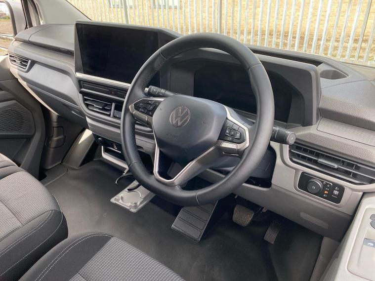 Transporter T30 short wheel base 150ps automatic Commerce Plus in metallic light grey with 3534 miles on the clock. This vehicle is serviced and prepped for immediate delivery. Extra's include: 5+ promise, tailgate, alarm, front & rear mud flaps, leather multi function steering wheel, heated multi function steering wheel, trip computer, bluetooth, keyless start, air con, front collision warning, cruise control with speed limiter, digital cockpit, rear view camera, front & rear parking sensors, wireless phone charger, rear view camera, prep for we connect, ply line and many more. A short video presentation of this vehicle is available upon request, call today for more information.