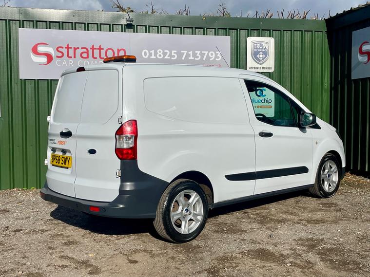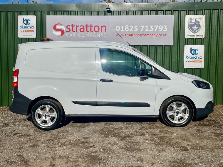 This 2019/68 Ford Transit Courier 1.5 TDCi Panel Van is a reliable commercial vehicle with 92716 miles on the clock, powered by a Diesel engine. as part of the sale Stratton will give the vehicle a oil and filter service and will supply with a new Mot, ULEZ compliance, this 5-door panel van comfortably seats 2 people and has a gross weight of 1810kg, making it a great choice for transporting goods. The sleek design includes 15-inch steel wheels, black headlight bezel, hub covers, bodyside mouldings, and self-colored door handles, giving it a professional and modern look. With no VAT, this Euro 6 van is a great investment for any business. This vehicle will undergo a complete and meticulous mechanical inspection which has the backing of a 3 month BLUECHIP extendable warranty. We must add at this juncture that the majority of our customers tend to extend to the 12 month all mechanical all electrical warranty at the extremely competitive price of just £399+ VAT. Full details can be viewed at dealer's website Offered for sale by Stratton car Company of Sussex A Family Run Business.