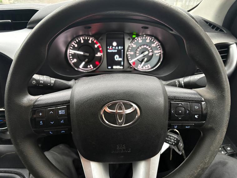 This 2021 Toyota Hilux is a reliable pickup truck with only 82000 miles on the clock. Powered by a 2.4 D-4D diesel engine, it's a tough and durable vehicle perfect for any work environment. With an MOT that expires on 23/05/2026 and ULEZ compliance, this pickup is ready for the road. It boasts 4 seats and 4 doors, providing comfort and convenience for both driver and passengers. The exterior features 17in black steel wheels, all-terrain tyres, body-colored bumpers, and a dark grey rear bumper, as well as front mudguards. This is a versatile and capable vehicle that can handle anything you throw at it, making it the ideal choice for anyone in need of a reliable and powerful pickup truck.,