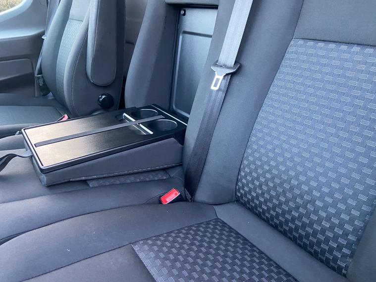 - front passengers seat - dual fixed with split lift up cushion for stowage and fold out table