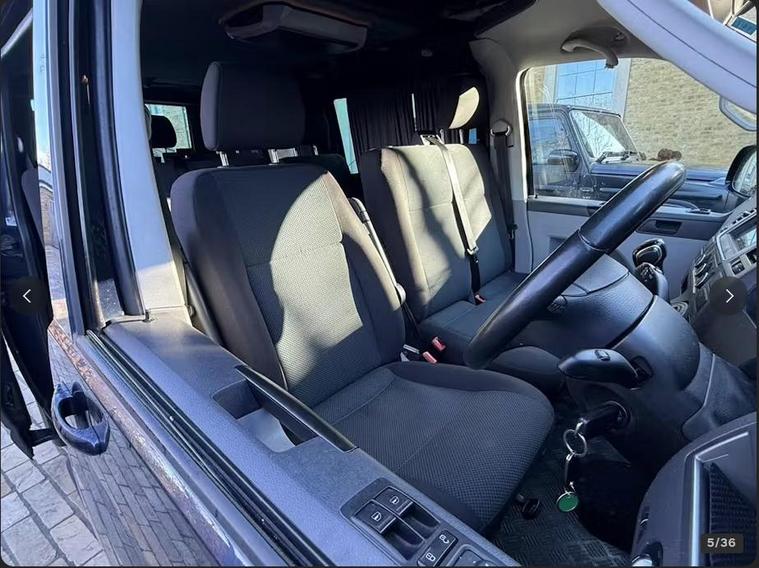 Cuckfield Motor Company are delighted to offer for sale this well presented and rare converted VW Transporter Hi-Line. Finished in Dark Blue with Charcoal Upholstery, this 9 Seated vehicle has had a professional Pop up Roof Conversion. It has a great Service History with recorded visits at 14826, 25446, 27563, 33861, 36466, 38900, 41841, 44048 and 47674 miles. The Toothed Belt was replaced at 27563 miles and the DSG Service carried out 41790 miles. Specification includes CARPLAY---Bluetooth Phone & Audio---Front & Rear Parking Sensors---9 Seats---Awning---Pop Up Roof---Privacy Glass---Heated Front Seats---Cruise Control---Air Conditioning---Tow Bar and much more.Every car we offer comes with a comprehensive provenance check certificate, Minimum 6 month warranty and new MOT and service where applicable. All part exchanges welcome.We offer extremely competitive finance packages to help you fund your new car.Cuckfield Motor Company Ltd is a family run business FCA approved dealer established for over 20 years, With 30 years experience in the motor trade.We are located in the village of Cuckfield just off the A23, 15 minutes from Gatwick airport and only 5 minutes from Haywards Heath train station.Please contact us via phone/email to view this car today. email us on: dealer's website
