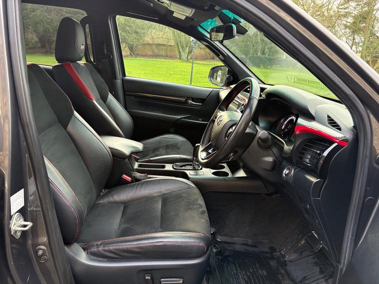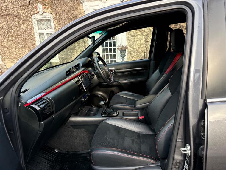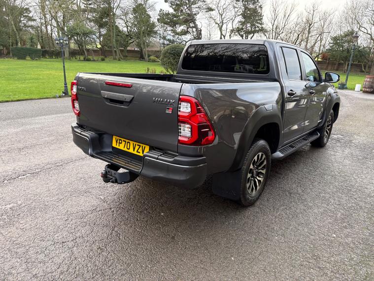 V VAR CAT S. Here we have a 2020 Toyota Hilux, with a mileage of 92000 miles, powered by a 2.4 D-4D diesel engine and equipped with a smooth automatic transmission and 4WD capability, making it an ideal pickup for rough terrains. This double cab 4-door vehicle has 5 seats, making it perfect for family or work use. With sleek 18-inch alloy wheels, black side bar, body-colored bumpers, and front mudguards, this Hilux exudes a strong and stylish presence. It also boasts features such as electric front windows and being ULEZ compliant, ensuring it meets the highest environmental standards. The MOT is valid until 27/10/2026, adding to the peace of mind for any prospective buyer. With 150 ps, this Hilux offers power and performance, making it a reliable and practical choice for those in need of a capable and durable pickup.,