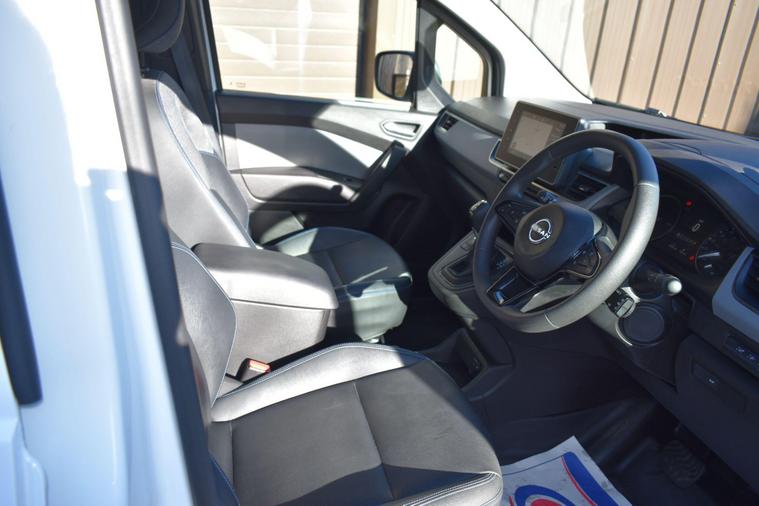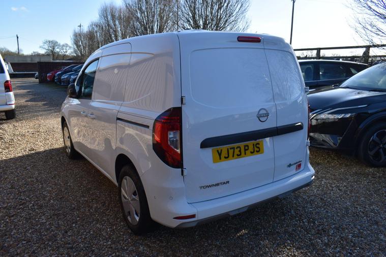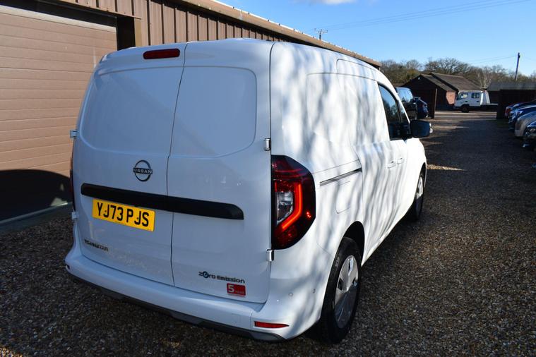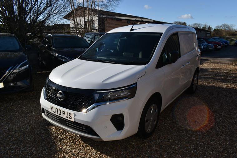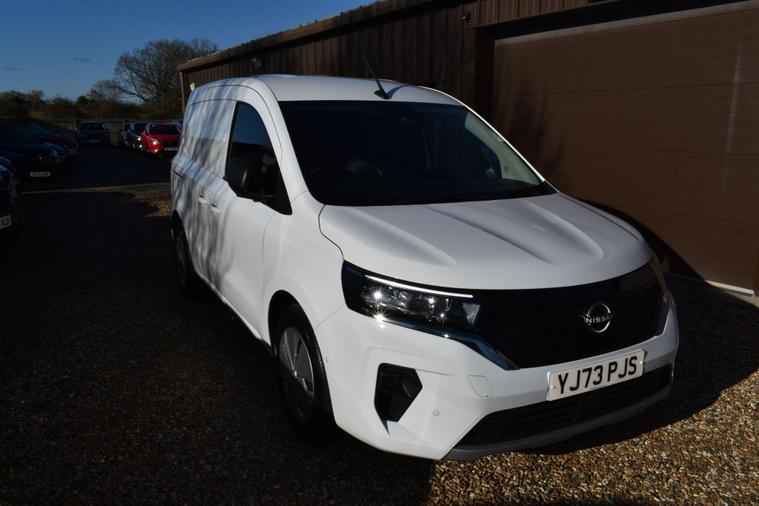 Finshed in White with black leather interior, one owner, service history, front and rear prking sensors, plylined, full bulkhead, 2 side loading doors, traction control, keyless start, air con, sat nav, reverse camera with guidelines, Bluetooth, DAB radio, HPI clear, finance available with this vehicle.... for further information please contact us on 01483334205. This 2023 Nissan Townstar boasts a full service history, offering peace of mind for its next owner. This electric L1 6dr Tekna derivative features a 45 kWh battery with a maximum range of 177 miles when new. Charging is convenient, with a full charge at home taking approximately 7 hours and 6 minutes using a 7kW charger, and a rapid charge to 80% achievable in just 39 minutes at a public charging station.The Tekna trim level comes equipped with a suite of advanced features designed for comfort and ease of use. Parking is made simple with front, side, and rear parking sensors, complemented by a rear camera. Inside, you'll find an 8in colour touchscreen infotainment system offering Apple CarPlay, Android Auto, and navigation. Keyless entry and keyless go allow for effortless access and starting, while automatic climate control ensures a comfortable cabin temperature. The 120 bhp electric engine provides responsive performance, indicating a superior driving experience compared to similar vehicles.