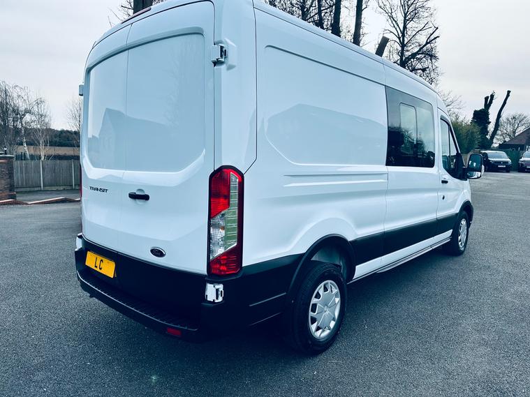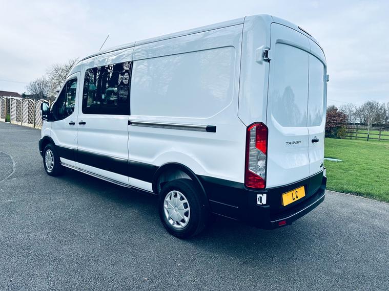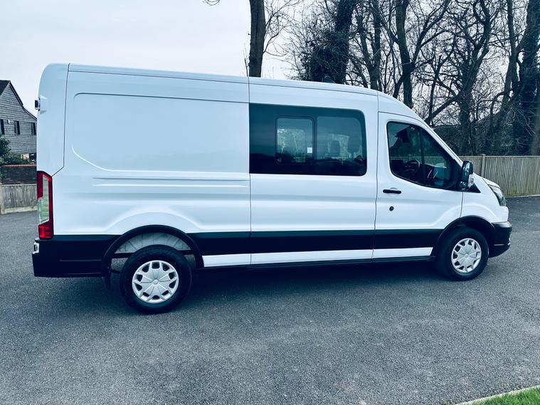 2024/24 REG TRANSIT 350 L3H2 TREND CREW VAN WITH AIRCON, LARGE MEDIA SCREEN, APPLE AND ANDROID CAR PLAY, DAB RADIO, BLUETOOTH CONNECTION, FRONT AND REAR PARKING SENSORS, CRUISE CONTROL, 6 SEATS, PLY LINED WITH EASY CLEAN FLOOR IN REAR. FINISHED IN FROZEN WHITE. MAIN DEALER WARRANTY UNTIL 29-06-2027.