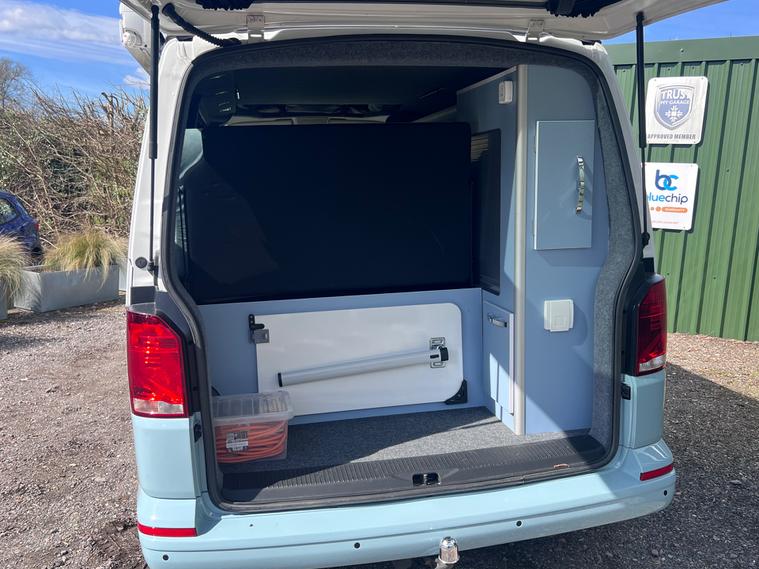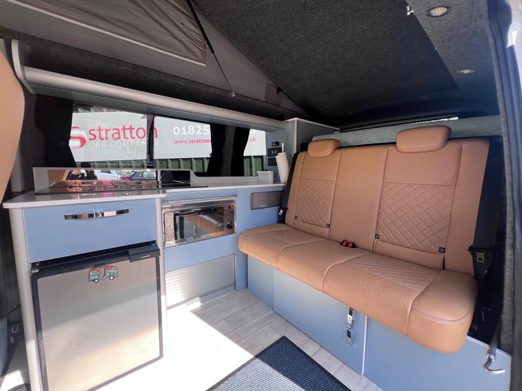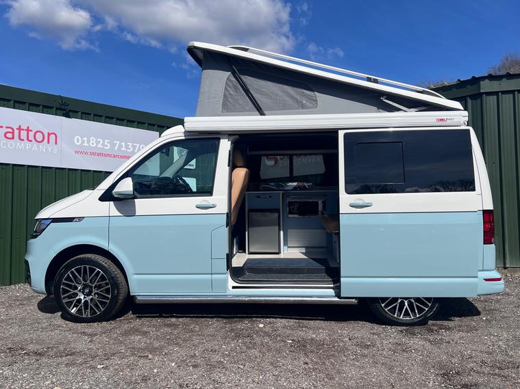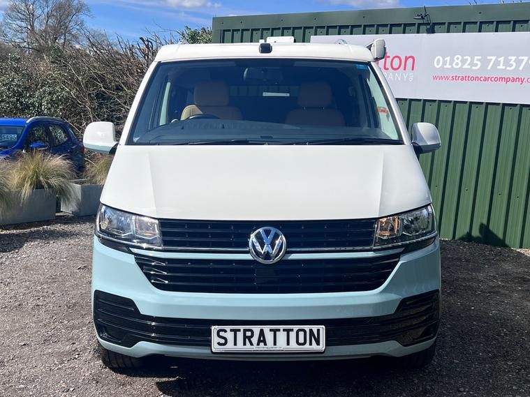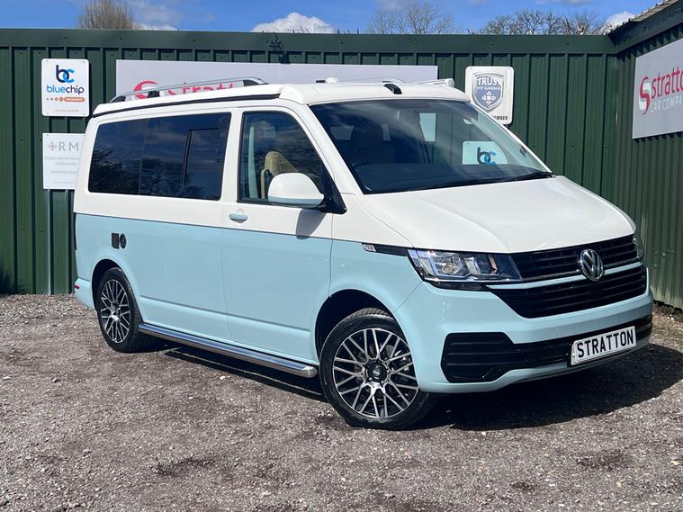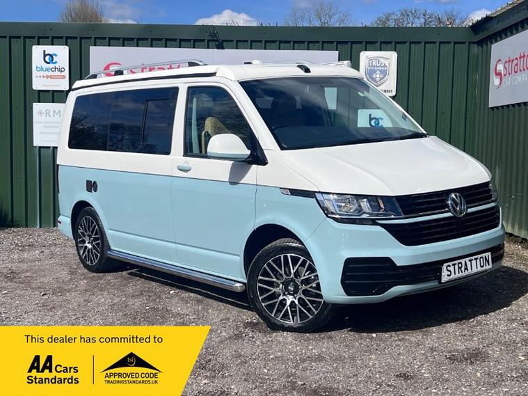 Stratton Car Company are excited to offer this Stunning 2021/71 Volkswagen TransporterT6.1 2.0 TDi 150 BHP Bluemotion Euro 6 Startline /Business Pack Automatic Campervan, Benefiting from a Full Service History Comprising of a Pdi + 4 service stamps last serviced at 32527 miles, as part of the sale we will carry out an oil and filter service. The Wheels are currently being professionally Refurbished. This vehicle has the perfect specification comprising of the following; Full Leather interior, Air Conditioning, Factory Radio/CD Player, Automatic Gearbox, Electric Windows, Electric power folding Mirrors, Cruise Control, Multi Airbags, Detachable tow bar, 18'' Diamond Cut Alloys, 4 Berth pop up roof bed/Rock and Roll bed, 12v/240v Fridge, Double Gas Hob, External Shower Outlet, Diesel Night Heater, Swivelling Front Chair, Lithium Leisure battery, Truma Semi Flexible Solar Panel, Reversing Camera, Fiamma Awning with outside LED lighting and lots lots more. This vehicle will undergo a complete and meticulous mechanical inspection which has the backing of a 3 month BLUECHIP extendable warranty. We must add at this juncture that the majority of our customers tend to extend to the 12 month all mechanical all electrical warranty at the extremely competitive knocked down price of just £399+ VAT. Full details can be viewed at dealer's website vehicle is in stunning condition which is a real credit to its former owner. Offered for sale by Stratton car Company of Sussex A Family Run Business.