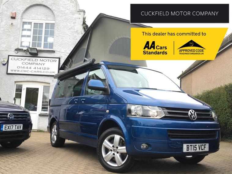 Cuckfield Motor Company are delighted to offer for sale this very well presented and maintained VW California SE TDi. Finished in Metallic Blue with Light Interior, this car has excellent Service History with recorded visits at 8738, 14828, 19866, 20842, 22666 and 22910 miles. CAMBELT and Water Pump were replaced at 18880 miles. Specification includes Sat Nav---Heated Front Seats---17'' Alloy Wheels---Pop Up Roof---Awning---Sink / Hob / Fridge---Electric Hook Up---Diesel Heater---Air Conditioning---Front & Rear Sensors---Bluetooth---Table & Chairs---Privacy Glass---Cruise Control---DAB & CD Player and more.Every car we offer comes with a HPI certificate, Minimum 6 months extendable warranty and new MOT and service where applicable.All part exchanges welcome.We offer extremely competitive finance packages to help you fund your new car.Cuckfield Motor Company Ltd is a family run business FCA approved dealer established for over 14 years, With 30 years experience in the motor trade.We are located in the village of Cuckfield just off the A23, 15 minutes from Gatwick airport and only 5 minutes from Haywards Heath train station.Please contact us via phone/email to view this car today. email us on: dealer's website