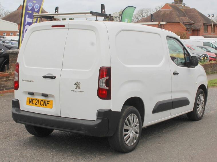 Introducing the 2021 Peugeot Partner 1.5 BlueHDi 1000 Professional Standard Panel Van with a powerful Diesel engine delivering 100 bhp, ULEZ compliant and with a gross weight of 2370kg. This reliable commercial vehicle has a mileage of 86400 and MOT until 07/09/2026, ensuring peace of mind for the long haul. The spacious single cab with 3 seats and 5 doors is designed with efficiency in mind. The interior features a PEUGEOT i-Cockpit with Head-Up Display, 8in Capacitive Colour Touchscreen with Connect DAB Radio, and Peugeot Connect SOS and Assistance, making every journey comfortable and connected. The exterior is equipped with 16in Steel Wheels with Rakiura Wheel Cover, ensuring a smooth ride in style. Perfect for transporting goods or equipment, this panel van is the ideal choice for any business., OPEN 7 DAYS A WEEK - A SELECTION OF UP TO 200 CARS AND VANS AVAILABLE. Click on dealer 'VISIT WEBSITE' link for many more large photographs of this car. We are a West Sussex Trading Standards Approved 'Buy with Confidence Dealership'.