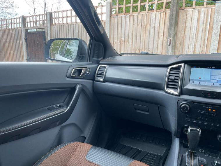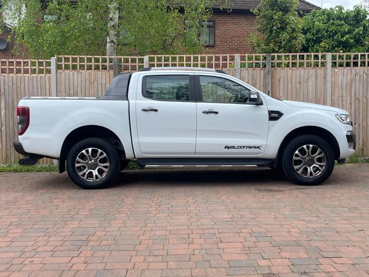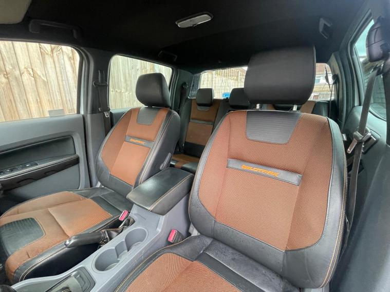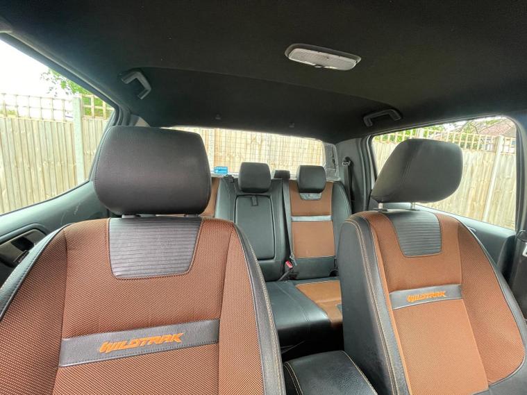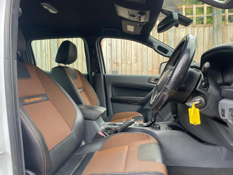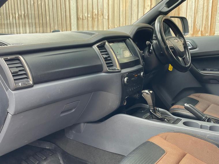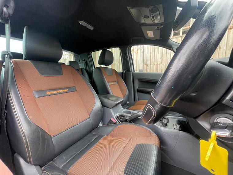 Here we have a 2017 Ford Ranger 3.2 TDCi Wildtrak Pickup Double Cab with 85750 miles on the clock and a 3.2 TDCi Diesel engine that boasts 200 ps, mated to an automatic 4WD Euro 5 transmission. This vehicle comfortably seats 5 and comes with 4 doors, ensuring easy access for all passengers. The MOT is valid until 25/09/2026, providing peace of mind for the next few years. The exterior boasts 18in Alloy Wheels, a Front Body Colour Bumper with Sports Highlighting, a Rear Stepped Steel Bumper in Titanium, and Black Door Handles and Puddle Lights on the Mirrors. This Ford Ranger is a reliable and stylish pickup, perfect for those in need of a sturdy vehicle that can handle both work and leisure activities.