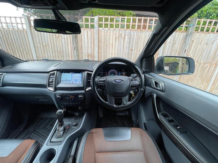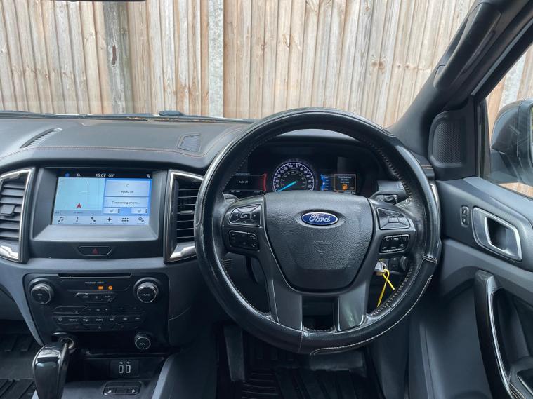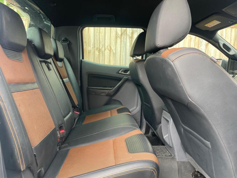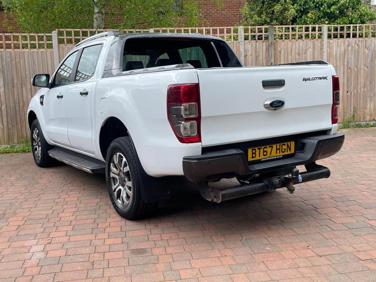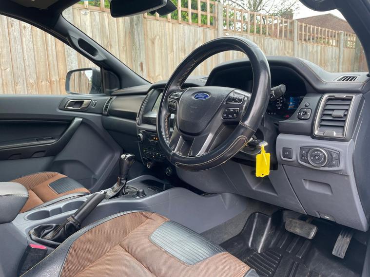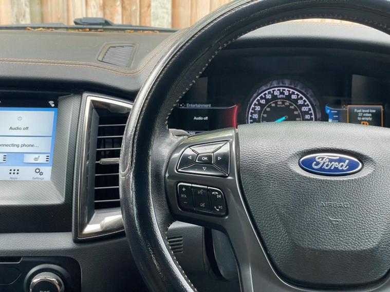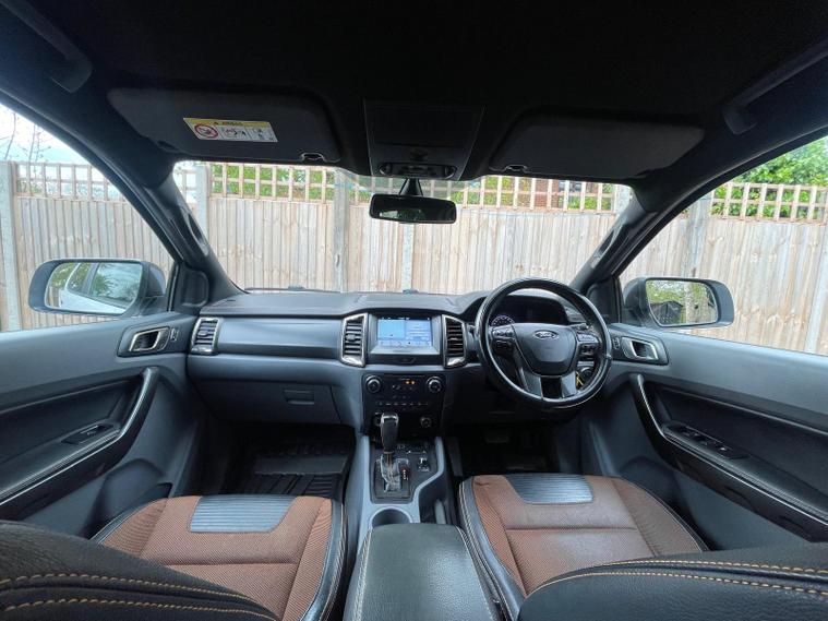 Here we have a 2017 Ford Ranger 3.2 TDCi Wildtrak Pickup Double Cab with 85750 miles on the clock and a 3.2 TDCi Diesel engine that boasts 200 ps, mated to an automatic 4WD Euro 5 transmission. This vehicle comfortably seats 5 and comes with 4 doors, ensuring easy access for all passengers. The MOT is valid until 25/09/2026, providing peace of mind for the next few years. The exterior boasts 18in Alloy Wheels, a Front Body Colour Bumper with Sports Highlighting, a Rear Stepped Steel Bumper in Titanium, and Black Door Handles and Puddle Lights on the Mirrors. This Ford Ranger is a reliable and stylish pickup, perfect for those in need of a sturdy vehicle that can handle both work and leisure activities.