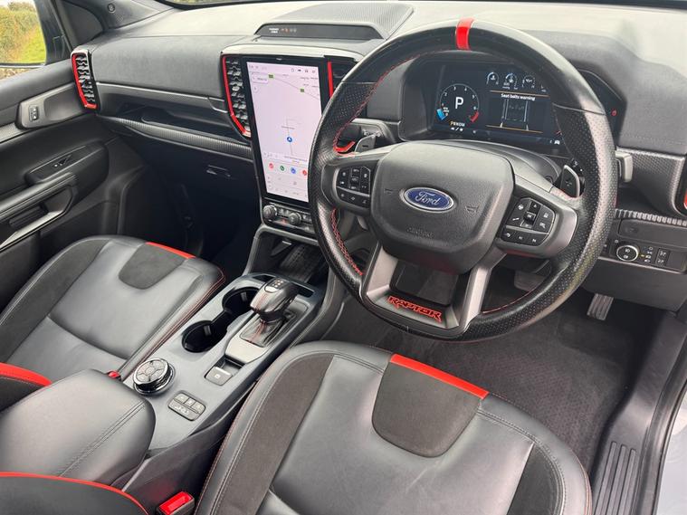 NO VAT! NATIONWIDE DELIVERY AVAILABLE! THIS FORD RANGER 3.0T V6 RAPTOR ECOBOOST FINISHED IN CONQUER GREY WITH SUPER MATTE BLACK LEATHER AND ALCANTARA BENEFITS FROM THE FOLLOWING SPECIFICATION, ELECTRIC ROLLER SHUTTER, 17" ALLOYS, SWITCHABLE EXHAUST MODE SELECTION, BANG & OLUFSEN SOUND SYSTEM, SIDE STEPS, 12" MULTI FUNCTION TOUCH SCREEN WITH SAT NAV, REAR VIEW REVERSE CAMERA, 360 CAMERA, DIGITAL DASH, TOWBAR, HEATED M/F/S/WHEEL WITH CRUISE CONTROL, PADDLE SHIFT AND VOICE CONTROL, ELECTRIC HEATED SEATS WITH LUMBAR SUPPORT, ELECTRIC FOLDING EXTERIOR MIRRORS, FRONT AND REAR PARK DISTANCE CONTROL, DUAL ZONE AIR CON CLIMATE CONTROL, AUTOMATICALLY DIMMING REAR VIEW MIRROR, AUTOMATIC HEAD LIGHTS, BLUETOOTH PHONE PREP, APPLE CARPLAY, ANDROID AUTO, PRIVACY GLASS, ISOFIX POINTS, BALANCE OF MANUFACTURERS WARRANTY VALID UNTIL JUNE 2026, FULL FORD SERVICE HISTORY, CENTRE ARM REST, B&O, QUIRKS CAR COMPANY ARE VERY PROUD WINNERS OF RUNNER UP FOR AUTOTRADER RETAILER OF THE YEAR 2021, WINNERS OF AUTOTRADER HIGHLY RATED FOR OUR CUSTOMER SERVICE 2021/20, AND WINNERS OF CAR GURUS TOP RATED DEALER 2021/20/19. WE USE THIRD PARTY SOURCES TO OBTAIN STANDARD AND OPTIONAL FITTED FEATURES AND SPECIFICATIONS. WE CANNOT BE HELD LIABLE FOR ITS ACCURACY SO PLEASE VERIFY THESE DETAILS WHEN VIEWING THE VEHICLE PRIOR TO PURCHASE. YOU MUST PHYSICALLY CHECK THE SPECIFICATION OF THE VEHICLE ON SITE PRIOR TO PURCHASE.