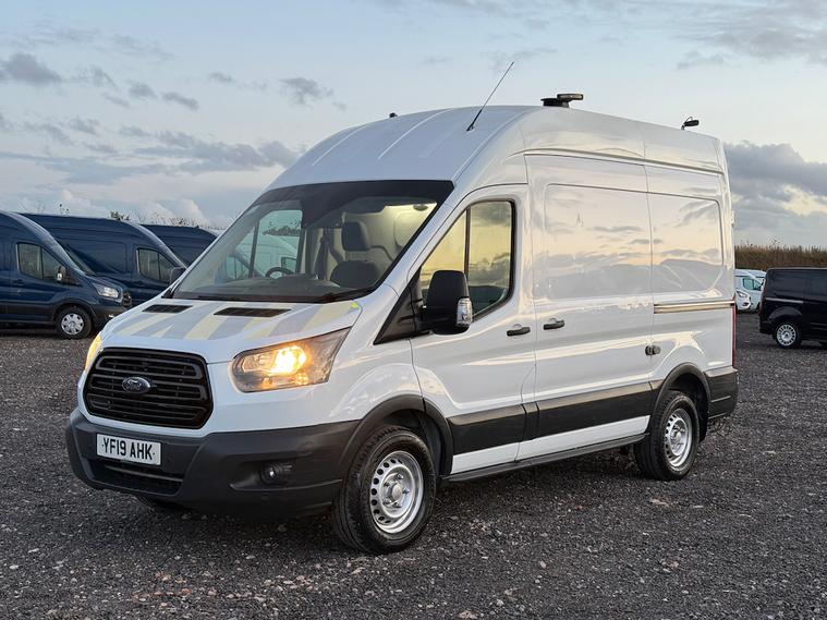 2019 Ford transit High Roof MWB , 2.0 TDCi 350 RWD . EURO 6 10195 (plus vat) *Finance Available * 3 months Warranty , 6 or 12 months extended package available WE HAVE FEW OF THESE STRAIGHT FROM WALES & WEST UTILITIES READY FOR WORK. It comes with: -63k genuine miles -Full service history including Wet Belt been done -MOT March 2026 -Reversing camera -Cruise Control -Air conditioning -PTO Air compressor -Full racking/110V power sockets/Diesel heater -Electric Tow bar -Electric windows -6 speed manual gearbox -Radio CD player, Bluetooth USB/Aux -HPI clear , V5 present -Very good tyres all around Van is ready to go , mechanically everything works as it should, absolutely nothing wrong with it at all. There are few age marks but nothing major. Viewing , test drivers or any inspection welcome.