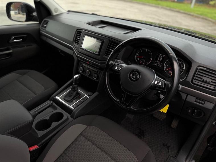 This Volkswagen Amarok 3.0 TDI V6 BlueMotion Tech Trendline Finished in Deep Black Mother of Pearl and this vehicle comes with the following specification: 17in Alloy Wheels | Discover Media Navigation System | TowBar | Mechanical Rear Differential | Navigation | Bluetooth Audio & Connectivity | Privacy Glass | 2 Owners | ULEZ & Euro 6 | FSH
