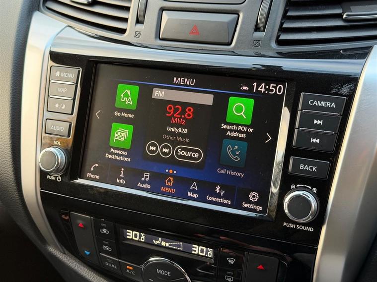 This Nissan Navara 2.3 dCi Tekna 4WD Euro 6 Finished in Metallic Black and this vehicle comes with the following specification: 18in Dimond Cut Alloys | Heated Leather Seats | 360 Degree Camera | Bluetooth Audio | Running Boards | 360 Degree Camera | Navigation | Bluetooth Phone | Reverse Camera | Privacy Glass | LED Daytime Running Lights | Xenon Headlights | Sidesteps | Electric Power Folding Mirrors |Towbar | Mouintain Top | 2 Keys | Navigation | Mountain Top Canopy