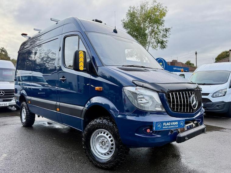 2016 Mercedes-Benz Sprinter 316 CDI 4X4 MWB HIGH ROOF A rare factory 4x4 Sprinter, ideal for off-grid use, site work or camper/expedition conversion. Equipped with onboard power, shelving, and upgraded exterior styling. ? 4X4 drivetrain ? Colour-coded front bumper ? Amber roof/work lights ? Inverter fitted (230V power) ? LED rear lighting ? Will come with NEW MOT ? Recent full service ? 146, 000 miles Features: Electric windows & mirrors Cruise control Rear parking camera Bluetooth radio Roof rack system Rear racking/storage system Steering wheel controls Overhead cab storage Included with Flag Vans New MOT on sale Recently serviced 3-Month Warranty (extendable to 24 months) 12-Month breakdown cover Finance & nationwide delivery available Part-exchange welcome No admin fees 17, 995 + VAT Flag Vans Quality Vans. Trusted Family Service