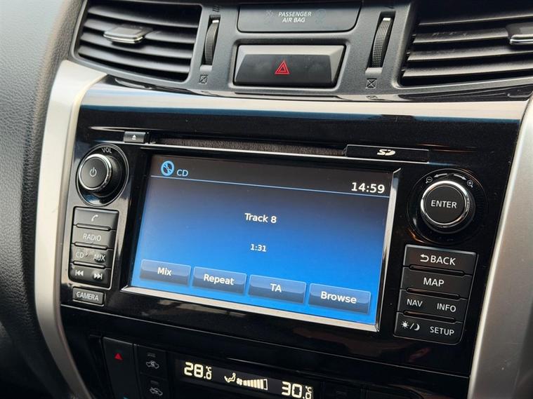 This Nissan Navara 2.3 dCi Tekna Auto 4WD Finished in Grey and this vehicle comes with the following specification: 18in Dimond Cut Alloys | Heated Leather Seats | 360 Degree Camera | Bluetooth Audio | Running Boards | 360 Degree Camera | Navigation | Bluetooth Phone | Reverse Camera | Privacy Glass | LED Daytime Running Lights | Xenon Headlights | Sidesteps | Electric Power Folding Mirrors |Towbar | 2 Keys | Navigation | NO VA