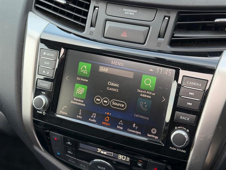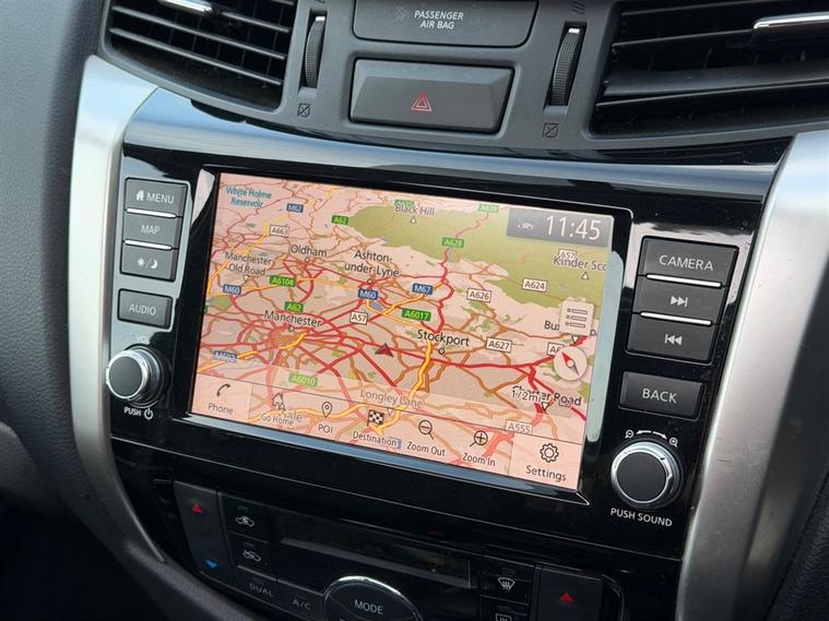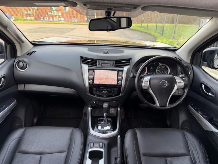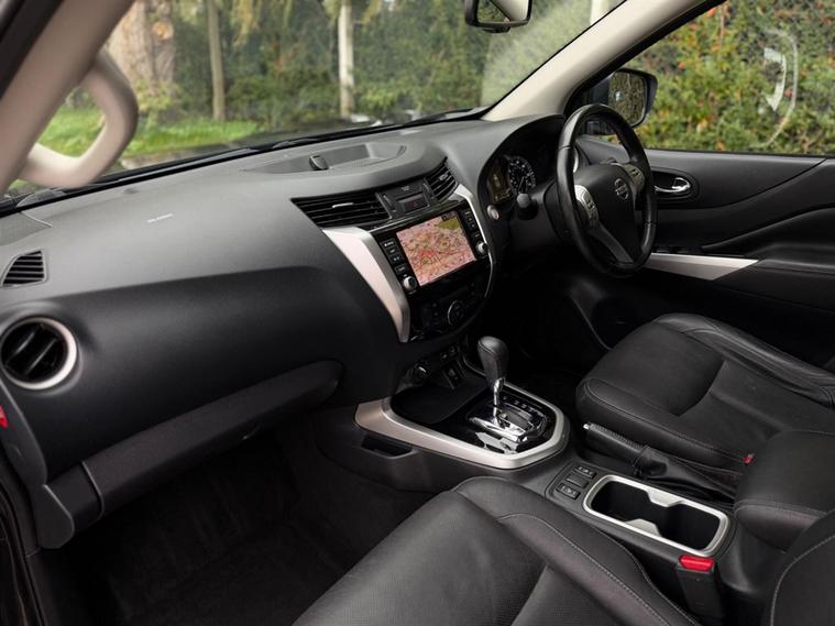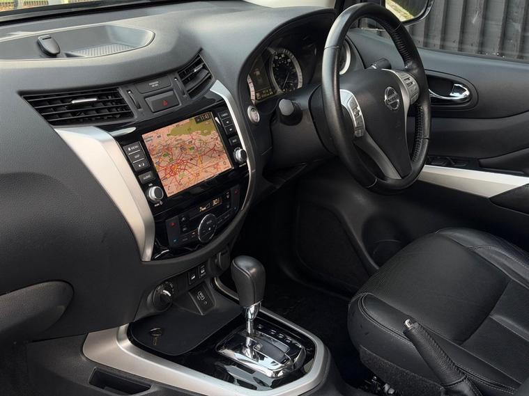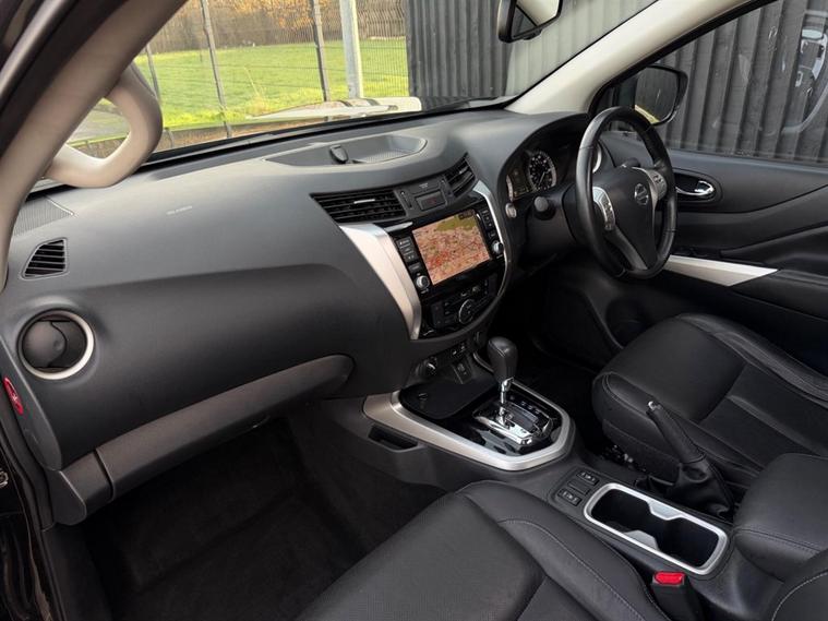 This Navara 2.3 dCi Tekna 4WD Euro 6 Finished in Metallic Black and this vehicle comes with the following specification: 18in Dimond Cut Alloys | Heated Leather Seats | 360 Degree Camera | Bluetooth Audio | Running Boards | 360 Degree Camera | Navigation | Bluetooth Phone | Reverse Camera | Privacy Glass | LED Daytime Running Lights | Xenon Headlights | Sidesteps | Electric Power Folding Mirrors |Towbar | 2 Keys | Navigation | FSH | SUNROOF | PROTOP |