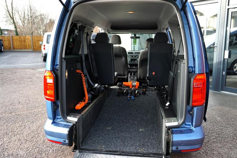 Volkswagen Caddy Maxi Life, Automatic, 2.0 Euro 6, Disabled, Wheelchair Accessible Vehicle, WAV. Another 1 Owner Vehicle that has been well Maintained and is Presented in Superb Condition. Complete with Air Conditioning, Power Steering, Remote Central locking and Electric windows. This Highly Desirable and Practical Automotive Group Conversion features a Lowered Floor, and a Lightweight Ramp to the rear. Complete with an Electric Wheelchair Winch. 4 Seats plus Wheelchair or Mobility Scooter with 4 Point Wheelchair Securing with Lap and Diagonal Seat Belt for the Wheelchair User. Supplied Complete with a fresh Service, Valet, MOT and a Comprehensive Warranty. We offer Nationwide Delivery, with over 50 Adapted Vehicles available. Please try Fish for insurance cover. dealer's website We are also Finance Brokers. Details on request. Call for details 01163433109 All prices quoted assume VAT exemption as all vehicles are converted for personal wheelchair use - please contact us for any queries or clarification. Follow links to our website for more high-quality pictures, measurements, and internal 360 photographs. Errors and omissions excepted. ABS, Air conditioning, Anti-theft protection, Bluetooth, Brake assist system, Central door locking, Connection to ext.entertainment devices, Cruise control, Cup holders, Electric windows, Electronic brake distribution, Electronic traction control, Front airbag, Front fog lights, Front seat centre armrest, Power steering, Remote boot/hatch/rear door release, Roof rails, Side airbag, Stability control, Start/Stop