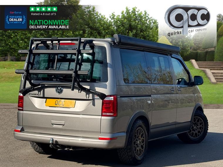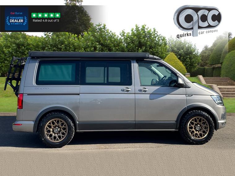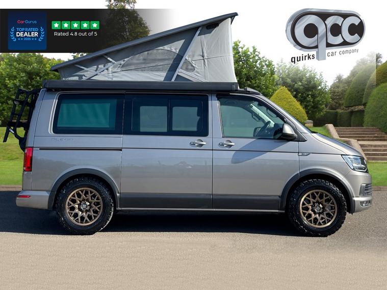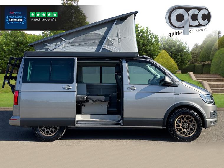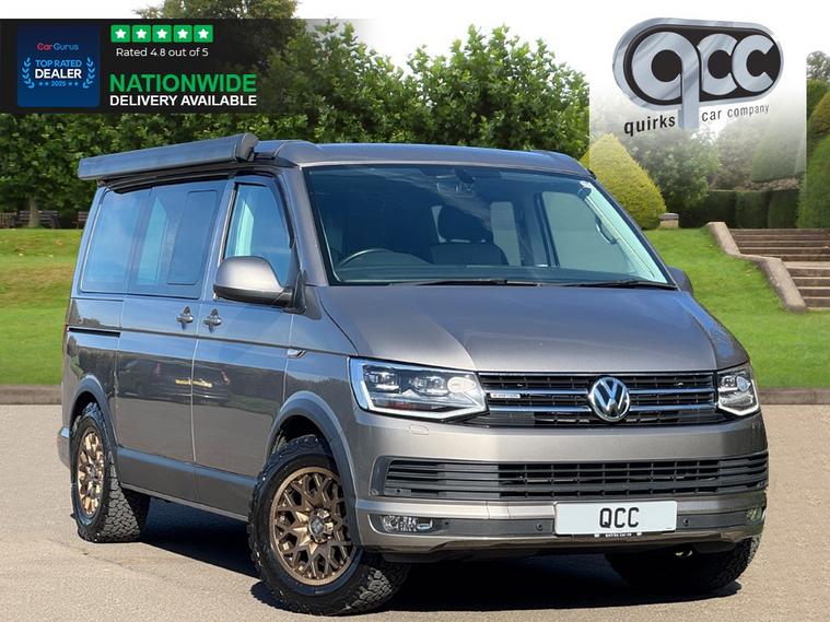 NATIONWIDE DELIVERY AVAILABLE! THIS 4MOTION VOLKSWAGEN CALIFORNIA 2.0 BITDI TECH OCEAN FINISHED IN MOJAVE BEIGE WITH BLACK AND GREY LEATHER BENEFITS FROM THE FOLLOWING SPECIFICATION, 4 BERTH WITH 4 BELTED SEATS, FULL SERVICE HISTORY, ELECTRIC POP UP ROOF, ROCK AND ROLL STYLE PULL OUT BED, AUXILLIARY HEATER, KITCHENETTE INCLUDING FRIDGE, 2 RING BURNER GAS STOVE, SINK, 17" ROGUE SATING GOLD ALLOYS, MANUAL SLIDING SIDE ENTRANCE DOOR, AWNING HOUSING AND RAIL IN BLACK, BIKE RACK, REMOVABLE/LOCKABLE TOWBAR, LIGHTS & VISION PACK, COMPOSITION MEDIA RADIO, TOUCH SCREEN, M/F/S/WHEEL WITH CRUISE CONTROL, HEATED SEATS WITH CALIFORNIA STITCHING, 3x ZONE AIR CON CLIMATE CONTROL WITH SEPERATE CONTROL PANEL FOR REAR HEATING, ELECTRIC FOLDING EXTEIROR MIRRORS, FRONT AND REAR PARK DISTANCE CONTROL, AUTOMATICALLY DIMMING REAR VIEW MIRROR, AUTOMATIC HEAD LIGHTS, LED HEAD LIGHTS, HIGH BEAM ASSIST, APP CONNECT WITH APPLE CARPLAY AND ANDROID AUTO, GREEN HEAT INSULATING GLASS, STORAGE NET, ARM RESTS, MOTORHOME, MOTOR HOME, CARAVAN, CAMPERVAN, CAMPER VAN, QUIRKS CAR COMPANY ARE VERY PROUD WINNERS OF RUNNER UP FOR AUTOTRADER RETAILER OF THE YEAR 2021, WINNERS OF AUTOTRADER HIGHLY RATED FOR OUR CUSTOMER SERVICE 2021/20, AND WINNERS OF CAR GURUS TOP RATED DEALER 2021/20/19. WE USE THIRD PARTY SOURCES TO OBTAIN STANDARD AND OPTIONAL FITTED FEATURES AND SPECIFICATIONS. WE CANNOT BE HELD LIABLE FOR ITS ACCURACY SO PLEASE VERIFY THESE DETAILS WHEN VIEWING THE VEHICLE PRIOR TO PURCHASE. YOU MUST PHYSICALLY CHECK THE SPECIFICATION OF THE VEHICLE ON SITE PRIOR TO PURCHASE.