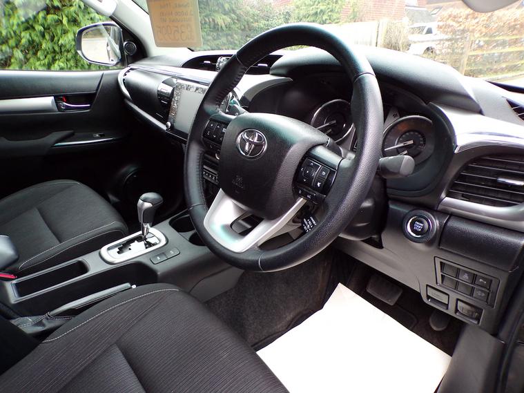 1 Owner with only 26000 Miles, with a full Toyota service history. Finished in Black metallic (cost option) with Black cloth interior. This "Invincible" Hilux features a colour coded Hard top with windows, integral park camera, full bluetooth integration, cruise control, climate control air conditioning, sun protection glass, diff lock, tow pack, 18" alloy wheels, electric windows and mirrors, remote central locking, and is in lovely condition throughout. Make it, The Smart Choice. Car Guru's Top Rated Dealer 201428236592. AutoTrader 5.0 star reviews. Google 5 star reviews. MAKING IT THE SMART CHOICE. This, and all of our Used Double Cab Pickup Trucks are based at our Northchapel Branch in West Sussex. So if you are looking for a quality used pick up for sale, don't hesitate to call us on 01428236592. Please call us before you visit to confirm vehicle availability and location. UK MAINLAND DELIVERY AVAILABLE.