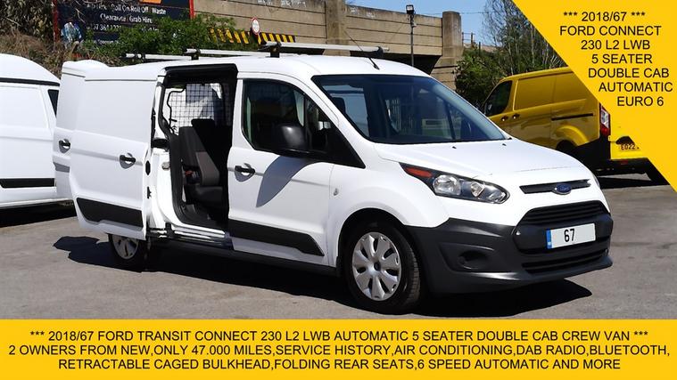 *** JUST ARRIVED *** 2018/67 FORD TRANSIT CONNECT 230 L2 LWB AUTOMATIC 5 SEATER DOUBLE CAB COMBI CREW VAN IN WHITE, ONLY 47.000 MILES, EURO 6 ULEZ COMPLIANT, 2 OWNERS FROM NEW, SERVICE HISTORY, AIR CONDITIONING, ELECTRIC WINDOWS, 6 AUTOMATIC POWERSHIFT, TWIN SIDE LOADING DOORS, RETRACTABLE CAGED BULKHEAD, LINED, ROOF BARS WITH ROLLER, REMOTE CENTRAL LOCKING, BLUETOOTH CONNECTION, GOOD CONDITION THROUGHOUT, A FREE 3 MONTHS WARRANTY WITH THE OPTION TO EXTEND, GREAT FIXED RATE FLEXIBLE FINANCE