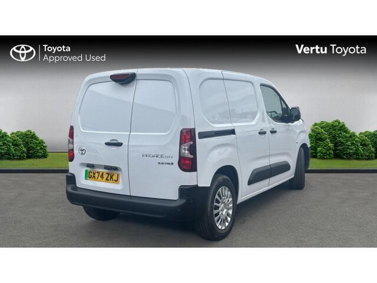 Toyota Proace City L1 Electric Icon Van 50kWh Auto, , Take on every job with confidence in the Toyota Proace City Icon 50kWh in crisp Icy White! With just 4, 381 miles and first registered on 15.11.24, this efficient and versatile electric van is built to handle business needs with ease. Featuring practical ply lining for added durability, a generous load space, and advanced tech for convenience and safety, its designed to keep your workday running smoothly. Perfect for urban driving and zero-emission zones, the Proace City Icon combines practicality with eco-friendly performance. Plus, with Toyotas 10 Year Service Activated Warranty, youll enjoy peace of mind mile after mile. Reliable, capable, and future-readythis Proace City Icon is the perfect partner for your business! All our vehicles at Vertu Motors come fully prepared with our peace of mind Main Dealer guarantee. Every vehicle is fully prepared both mechanically and cosmetically up to the highest standard which even includes having any tyre replaced that has less than 3mm tread depth (legal limit is 1.6mm). Every vehicle will have a minimum of 9 months MOT remaining and you will not have to service the vehicle for at least 6 months or 6000 miles. We ensure that you will have a minimum of 2 keys and to give you even further reassurance we also supply you with a 3 months complimentary warranty and a 14-day money back guarantee. Our vehicles also come with a full HPI vehicle check assuring you that your new vehicle will have no registered accident claims reported, or any outstanding finance, it also shows the vehicle has not been imported. In addition to this we also do a full Government VOSA report check to verify the mileage on all cars over 3 years old. This service comes free of charge to all our customers unlike other main dealers who charge you an admin fee for this service. We also offer nationwide delivery on all our vehicles, so call today to arrange a viewing / test drive and let one of our professional sales executives give you the Vertu Motors experience.