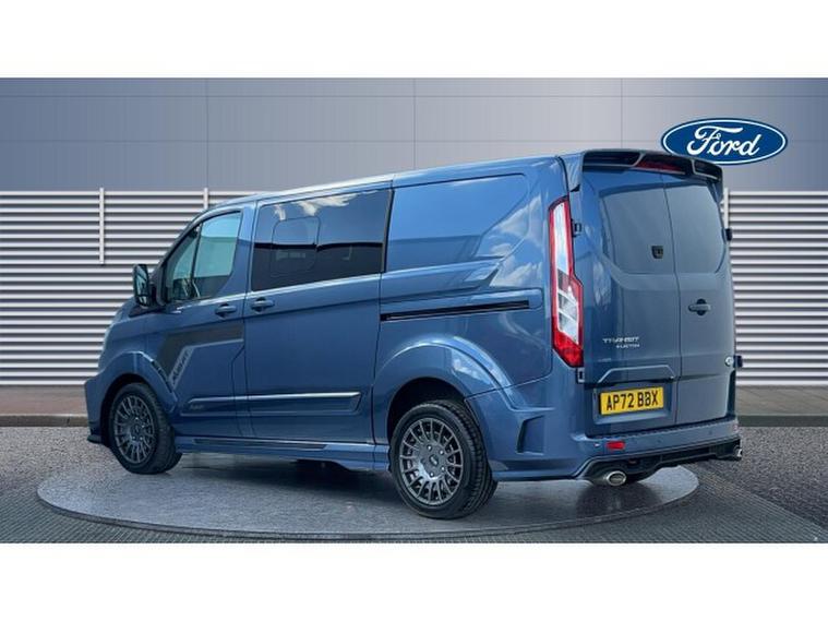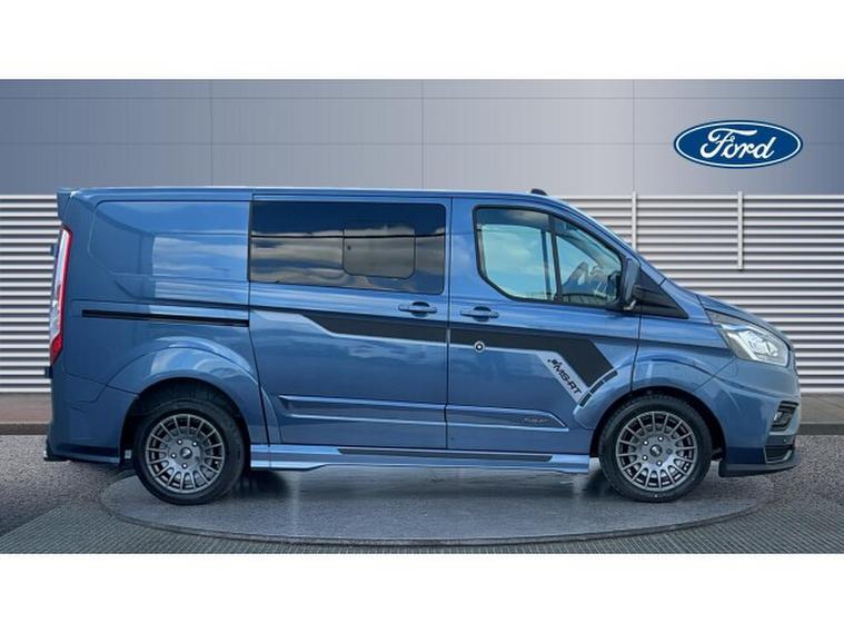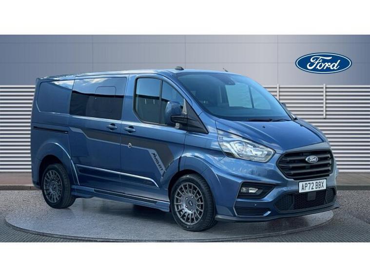 Ford Transit Custom 320 L1 Diesel Fwd 2.0 EcoBlue 170ps Low Roof D/Cab Limited Van Auto, , This 2023 Ford Transit Custom 320 L1 2.0 EcoBlue 170 PS MS-RT Auto in blue delivers a striking blend of performance, style and usefulness. Powered by a 2.0-litre EcoBlue diesel engine with 170 PS matched to an 8-speed automatic transmission, this MS-RT version elevates the standard Transit Custom with sporty engineering and enhanced driving dynamics. Externally, the MS-RT styling is bold: flared wheel arches, aggressive front bumper with integrated splitter, lowered sports side skirts, aerodynamic rear spoiler, a rear bumper with diffuser and exhaust tip, and gloss black mirror caps and door handles for contrast. The 19-inch MS-RT alloy wheels and blue brake callipers add further visual flair. Body coloured front and rear bumpers and MS-RT Blue accents reinforce the performance theme. Inside, the cabin is upgraded with sporty touches: heating for seats and steering wheel, MS-RT sport seats (eco-leather and suede style with bolster support), a sports steering wheel with a 12-oclock blue marker and MS-RT badging, plus a premium gearshift knob. Infotainment is modern with a large touchscreen, SYNC 4 system with Apple CarPlay/Android Auto, wireless charging, and a 5G embedded modem. On the safety and utility front, it retains all the work-van essentials: ABS, ESP, traction control, hill-launch assist, dual zone climate control, good visibility features such as automatic headlights, LED lights and rain-sensing/auto-fold mirrors. The load area is usefully sized for an L1 Low Roof, with tie-down loops, robust interior trim and functional doors.