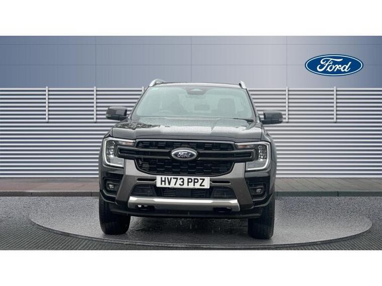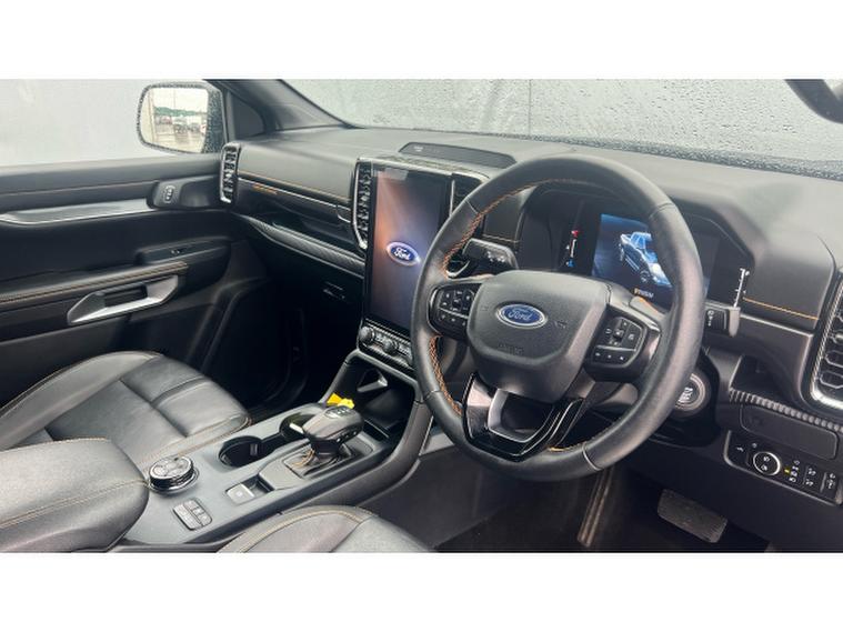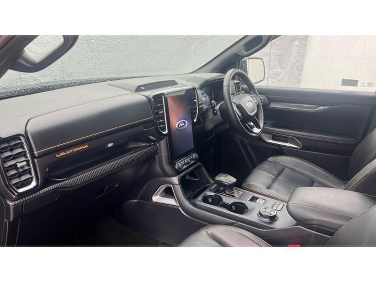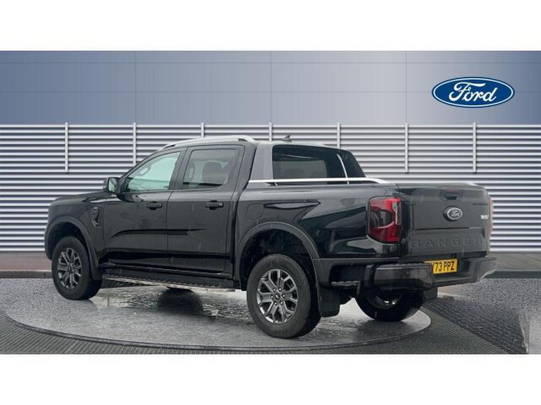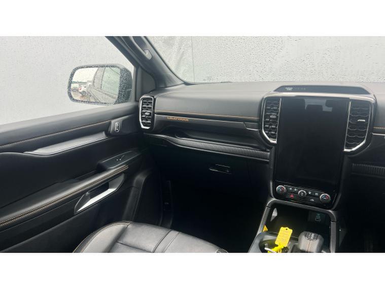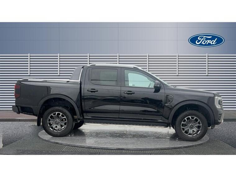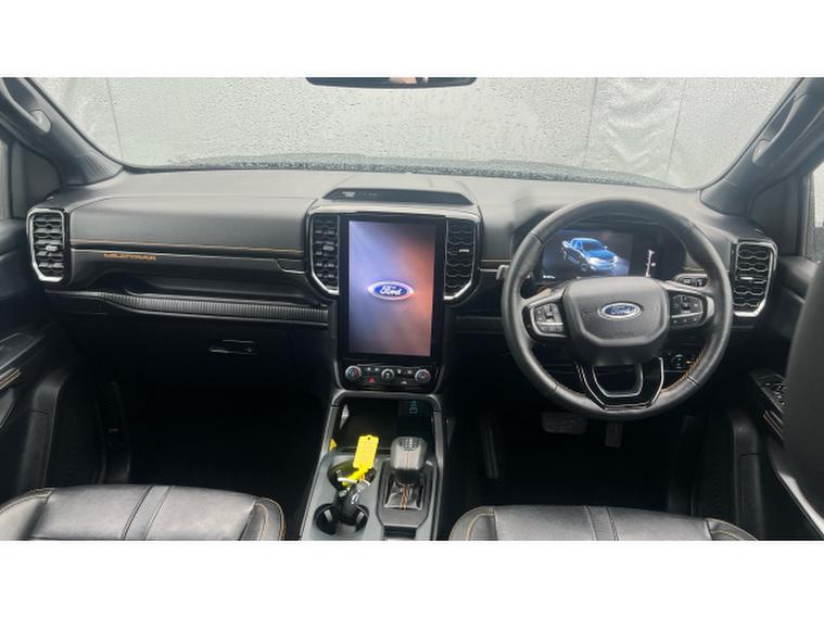 Ford Ranger Diesel Pick Up Double Cab Wildtrak 2.0 EcoBlue 205 Auto, , This Wildtrak is powered by a 2.0-litre EcoBlue diesel engine delivering around 205 PS (≈, 151 kW), paired with a smooth 10-speed automatic transmission and four-wheel drive capability, giving it strong on-road manners plus off-road muscle. Emissions comply with Euro-6 standards. Fuel economy is modest for a vehicle of this size, with a combined WLTP figure of around 32 mpg (≈, 230 g/km CO₂, ). Inside, the Wildtrak trim offers a premium cabin with leather or micro-rib embossed leather seating, heated front seats, dual-zone automatic climate control, and modern infotainment including navigation, Bluetooth, DAB radio, and driver assistance features such as lane-keeping aid, adaptive speed control, rear-view camera and parking sensors. On the exterior, the black finish is complemented by 18-inch alloys, tinted/privacy rear glass, roof-rails, a rear bumper step, body-coloured door handles, and power folding heated mirrors. Wildtrak styling elements like premium side-steps, bold grille, LED front fog lights, and perhaps accent trims add to its rugged yet upscale appeal. In terms of capability: its gross vehicle weight is approximately 3, 280 kg, with a payload in the region of 1, 040 kg, and towing capacity (braked) of up to 3, 500 kg making it well suited for both work and recreation.