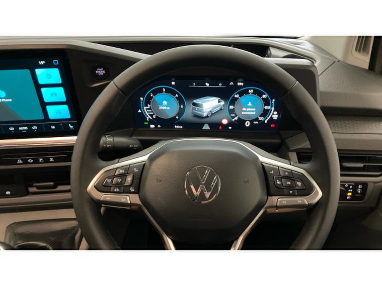 The Commerce Pro trim level includes a suite of advanced technology designed for convenience and safety. Adaptive Cruise Control with a predictive speed limiter helps maintain a set speed and distance from the vehicle ahead, while the Connectivity Package, including wireless mobile phone charging, keeps you connected on the go. Inside, you'll find a single zone air conditioning system with automatic climate control for a comfortable cabin environment. This Transporter also benefits from a low insurance group, making it an economical choice for your business needs.