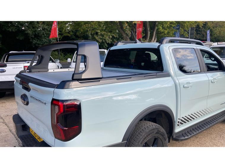 With its bold Stormtrak design and premium detailing, this Ranger demands attention on road and off. The Adjustable Sports Bar Styling Pack elevates practicality and presence featuring a moveable rear bar and integrated roof bars, it allows you to securely carry long loads on the roof while enhancing the trucks muscular profile. This isnt just style its purpose-built versatility.