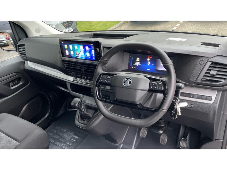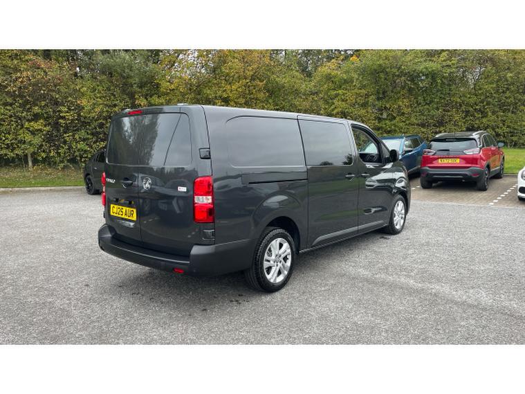 This new shape model features the new Vauxhall 'Vizor' gloss black grille, has daytime running lights, rear parking sensors, air conditioning, wireless Apple/Android Carplay, cruise control, Bluetooth, DAB radio and automatic headlamps and wipers. The rear is ply-lined for protection and features barn-style rear doors for access and twin sliding doors for rear passenger access.
