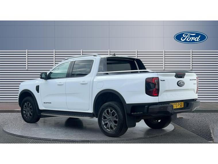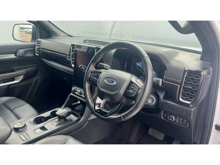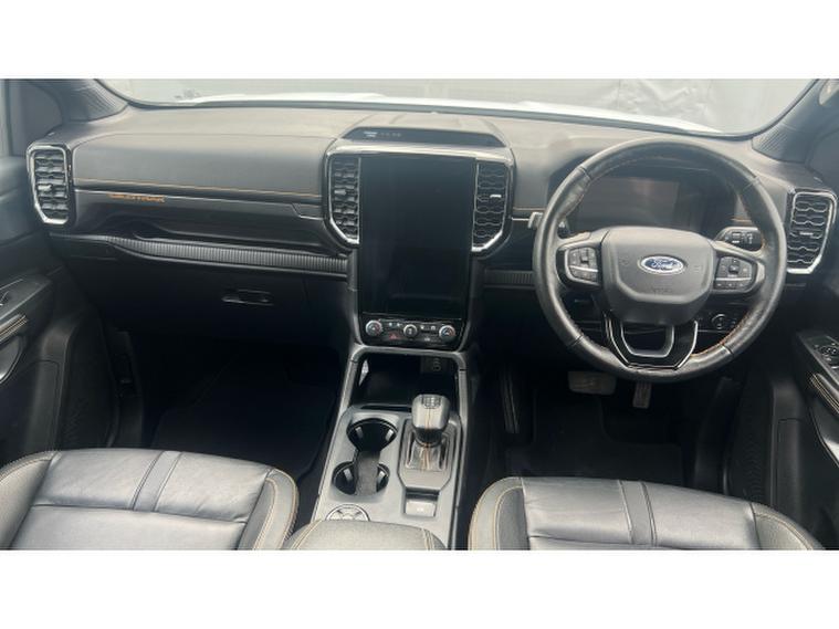 Ford Ranger Diesel Pick Up Double Cab Wildtrak 2.0 EcoBlue 205 Auto, , This 2023 Ford Ranger Wildtrak 2.0 EcoBlue 205 Auto Double Cab is a stylish, powerful and capable pickup, finished in crisp white and built to balance workhorse toughness with comfort and tech. Under the bonnet it has a 2.0-litre EcoBlue diesel engine producing 205 PS (≈, 151 kW) and around 500 Nm of torque, paired with a 10-speed automatic transmission and 4WD driveline. Its no slouch: towing capability is strong, payloads are generous, and gross vehicle weight runs around 3, 280 kg. Efficiency is what youd expect of a heavy duty diesel pickup: combined WLTP fuel consumption is about 8.8 l/100km, giving around 32 mpg. CO₂, emissions are in the region of 230 g/km. Inside, the Wildtrak trim brings premium touches: dual-zone automatic climate control, heated front seats, chrome or accent detailing, keyless entry/start, and high-quality materials (leather or micro-rib upholstery) with contrast stitching. On the outside you get 18-inch alloy wheels, privacy glass, roof rails, LED lighting, side steps, and power-folding heated mirrors. Safety and driver-assist features include emergency braking, lane keeping aids, traffic sign recognition, rear parking sensors or camera, and a suite of airbags. Overall, the 2023 Wildtrak 2.0 EcoBlue 205 Auto gives strong performance, solid capability for towing and payload, along with a refined cabin and modern tech making it suitable for both work and daily driving.