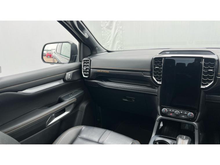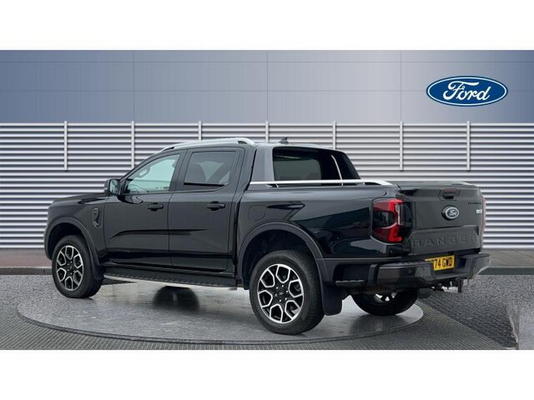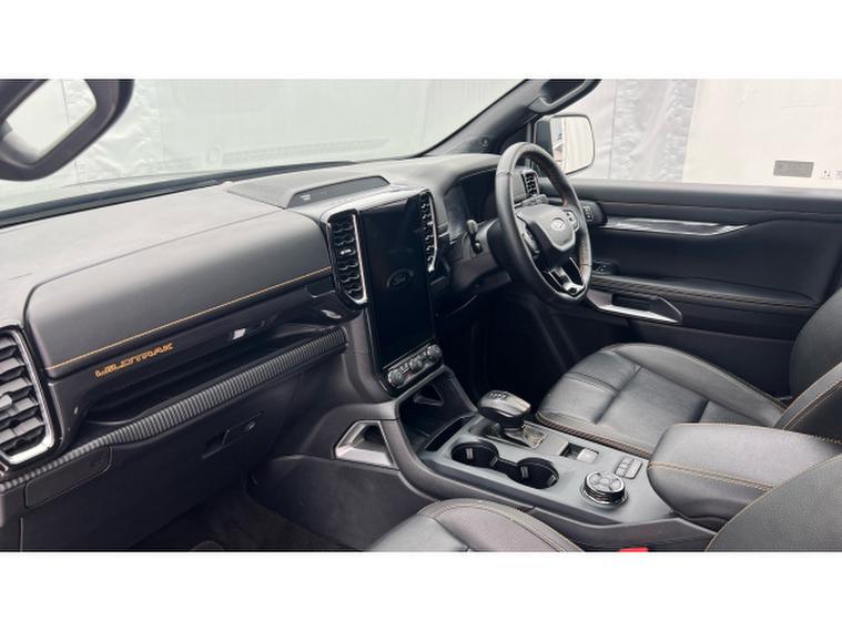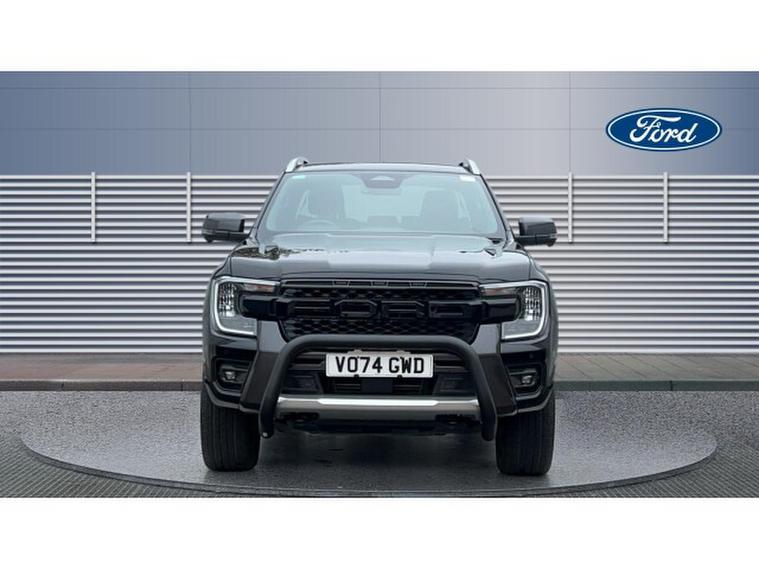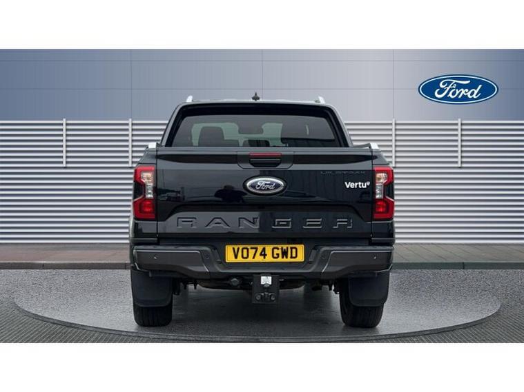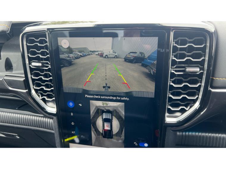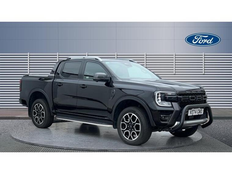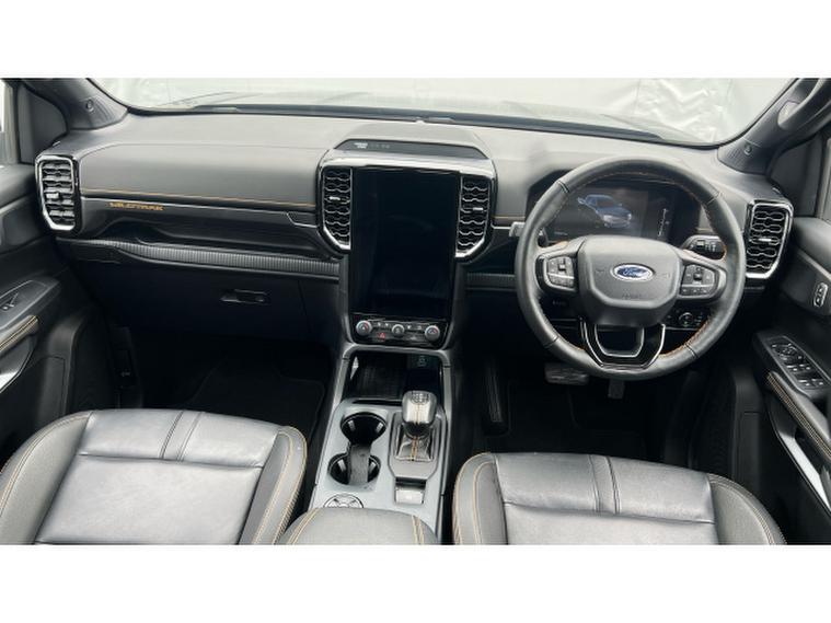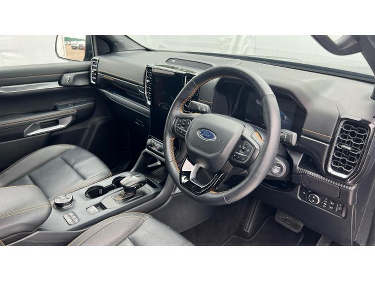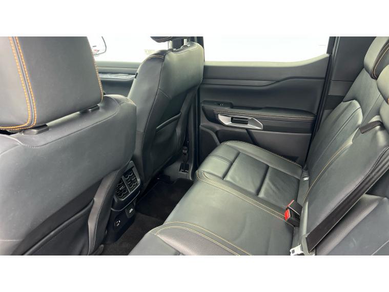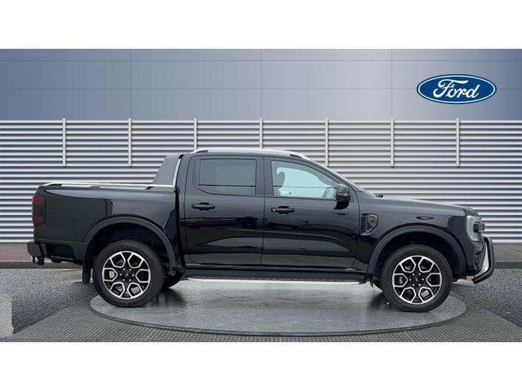 Ford Ranger Diesel Pick Up D/Cab Wildtrak 3.0 EcoBlue V6 240 Auto, , This 2024 Ford Ranger Wildtrak 3.0 V6 EcoBlue 240 Automatic Double Cab in black is the top-end work-and-lifestyle pickup, combining brute power with modern sophistication. Under the bonnet is a 3.0-litre V6 turbodiesel engine delivering 240 PS and a hefty 600 Nm of torque from around 1, 750-2, 250 rpm, paired with a 10-speed automatic transmission and full-time four-wheel drive. It has serious capability: a braked towing capacity of 3, 500 kg and a payload around 1, 050-1, 060 kg, making it adept for heavy loads, trailers or off-road gear. The Wildtrak trim brings rugged styling: bold black finish, side steps, roof rails, and large 18-inch alloy wheels with all-season tyres. Inside, the cabin is well equipped: heated front seats, dual-zone automatic climate control, premium materials with Wildtrak-specific finishes, modern infotainment with SYNC, driver aids like AEB (Autonomous Emergency Braking), ISA (Intelligent Speed Assistance), lane-keeping, and parking sensors/cameras. The overall dimensions are substantial: about 5.37 m length, 1.88-1.89 m height, and 3.27 m wheelbase, giving good presence and space. Fuel economy is modest, with combined consumption around 28 mpg (WLTP) and CO₂, emissions approximately 264 g/km typical for a V6 diesel of this size and capability.