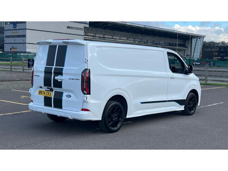 Ford Transit Custom 300 L2 Diesel Fwd 2.0 EcoBlue 170ps H1 Van Sport Auto, , *500 Off + 500 Extra for PX* Offer ends 17th November 2025, (500 extra for PX T&C's apply) The Custom Sport is Fords sport styled and performance inspired Transit. It comes with some awesome features including exterior racing stripes and decals, 17 sport alloys, sport body kit with rear spoiler, sport style half leather heated driver and passenger seats with a powered driver seat, dual zone climate control and LED taillights. Cruise control, rear camera, front and rear parking sensors, auto LED headlights, rain sensing wipers and Ford Sync 4 13 touch screen with wireless apple car play and android auto are also standard. This van has it all, the looks, the performance and is fantastic value for money.