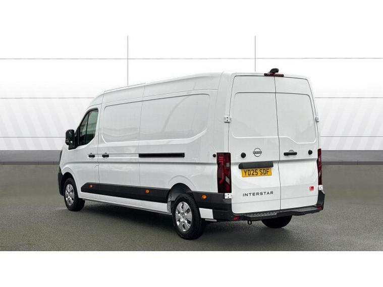 Boasting an incredibly low mileage of just 13 miles, this 2025 registered Nissan Interstar presents as virtually new. This 2.0 dCi 35 Tekna L3 H2 Euro 6 (s/s) 4dr model, powered by an efficient 2.0 litre diesel engine, benefits from a full dealership service history, offering peace of mind. The Tekna trim level ensures a well equipped experience, featuring front parking sensors with parking assistance, automatic headlights, and Bluetooth connectivity for seamless communication and entertainment.