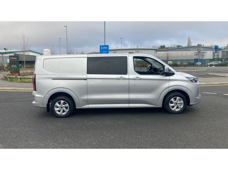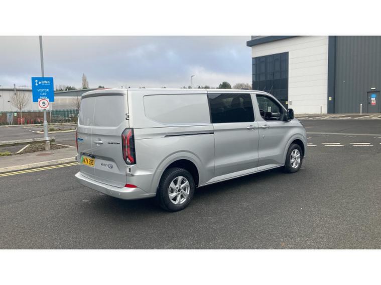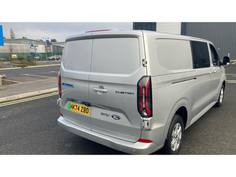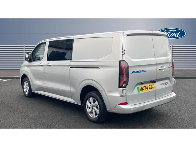 Ford Transit Custom E-320 L2 Rwd 100kW 65kWh H1 Double Cab Van Limited Auto, , Introducing the E Custom 320 L2 R 100kW 65kWh H1 Double Cab Van Limited Auto with only 234 miles finished in the Moondust Silver. The L2 offers extra room in the back providing an up to an extra 40cm in length to its L1 counterpart. The Double Cab offering 6 seats makes the vehicle perfect for the family as well as being suitable for business use. The L2 paired with the extra seating makes it the perfect leisure and business vehicle. The 65 kWh battery offers a real-world range of up to 198 miles while the 100 kW 136ps offers a smooth and quiet acceleration. The Limited trim offers many features including: Apple CarPlay & Android Auto compatibility, Bluetooth connectivity, Air conditioning and heated front seats, DAB digital radio, 360-degree parking sensors with rear-view camera, Power-folding, heated mirrors and heated windscreen, Cruise control, Auto Hold, and Auto Start-Stop functions, 16 alloy wheels adding a stylish finish and much more.