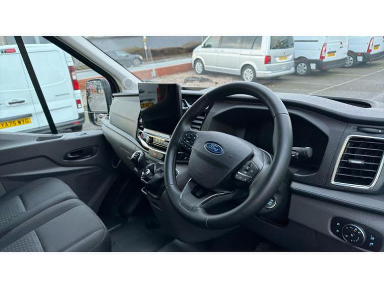 A very well equipped van with the latest version of Ford's Sync media system, this is a great system to use and gives access to the navigation system, Apple play/ Android auto, the climate control system that of course has air conditioning. The van also has the a raft of safety systems these include Pre-Collision Assist, Lane Centring, Blind Spot Assist, Cross Traffic Alert, Reverse Brake Assist, and a 360 Camera/Parking Sensors, plus intelligent cruise control, intelligent speed assist, and emergency assistance, it's good to know the vehicle you're driving has your back!