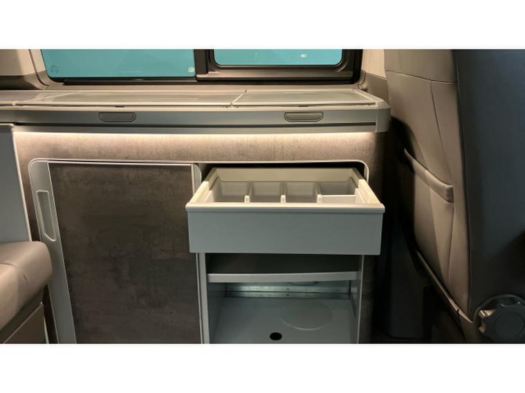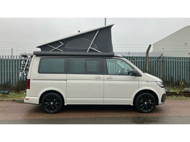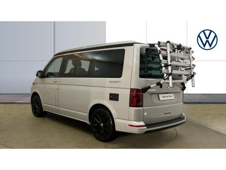 Volkswagen California 2.0 TDI Ocean 204 4dr 4MOTION DSG Diesel Estate, , This 2022 Volkswagen California BiTDI Ocean is a Volkswagen manufacturer approved vehicle, offering peace of mind and assurance of quality. This four wheel drive model is equipped with a 2.0 litre diesel engine and meets Euro 6 emission standards. Inside, you'll find Art Velours seat centres with leather look side bolsters in a stylish Palladium Titanium Black, complemented by a wood effect floor covering. Practicality is enhanced with graphite grey cupboards featuring a slate effect, and a convenient outdoor shower connection.